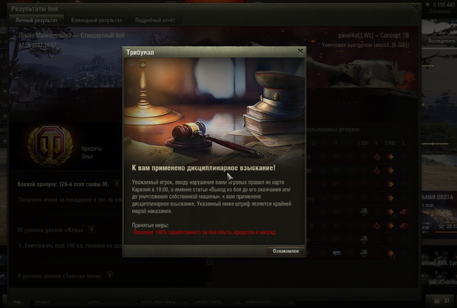 Всем здравствуйте. На счет отмены трибунала конечно шучу, наказывать нарушителей конечно же необходимо, основное предложение касательно дисциплинарного взыскания после раннего выхода из боя. Не буду заострять тему на том, почему частые разгромные бои, как победы так и поражения, почему и из за чего это, каждый это решает для себя, тема не для этого. Основная суть не о следствии, а о последствии, то есть, когда бой уже заведомо поражение, вот прям знаешь, что ты проиграл, и затащить уж точно не можешь, когда счет 0:10 и максимум что ты можешь сделать, так это либо поехать на противников и быстрей выйти из боя, либо зажаться в углу и ждать своей участи (утрирую конечно, грубо, но суть вы поняли надеюсь). И вот, если ты не хочешь продолжать такой бой, вот прям никак, то есть пару вариантов, из которых только 1 самый верный как безнаказанно выйти из боя и все про них знают. А вот просто взять и выйти из боя пока твоя техника не уничтожена, нельзя! Предлагаю, при определенных обстоятельствах, разработчики лучше знают, но и от игроков предложения приветствуются, отменить штрафной выход из боя и дисциплинарное взыскание на 100% при условии однозначного поражения, с большим перевесом сил, и получить за бой все то, что успел заработать до нажатия кнопки выхода. Реплеи записываются до окончания боя или раннего выхода, так и здесь проблем с этим не будет. http://cdn-frm-eu.wargaming.net/wot/ru/uploads/monthly_06_2021/post-12308623-0-43319300-1623786966_thumb.pnghttp://cdn-frm-eu.wargaming.net/wot/ru/uploads/monthly_06_2021/post-12308623-0-12751000-1623786991_thumb.pnghttp://cdn-frm-eu.wargaming.net/wot/ru/uploads/monthly_06_2021/post-12308623-0-79244200-1623787294_thumb.jpg