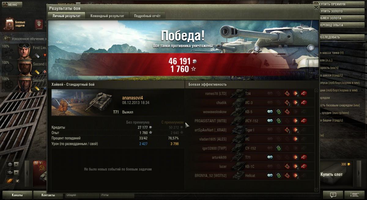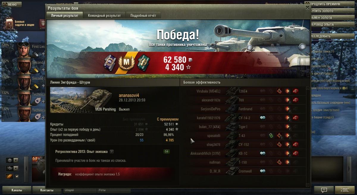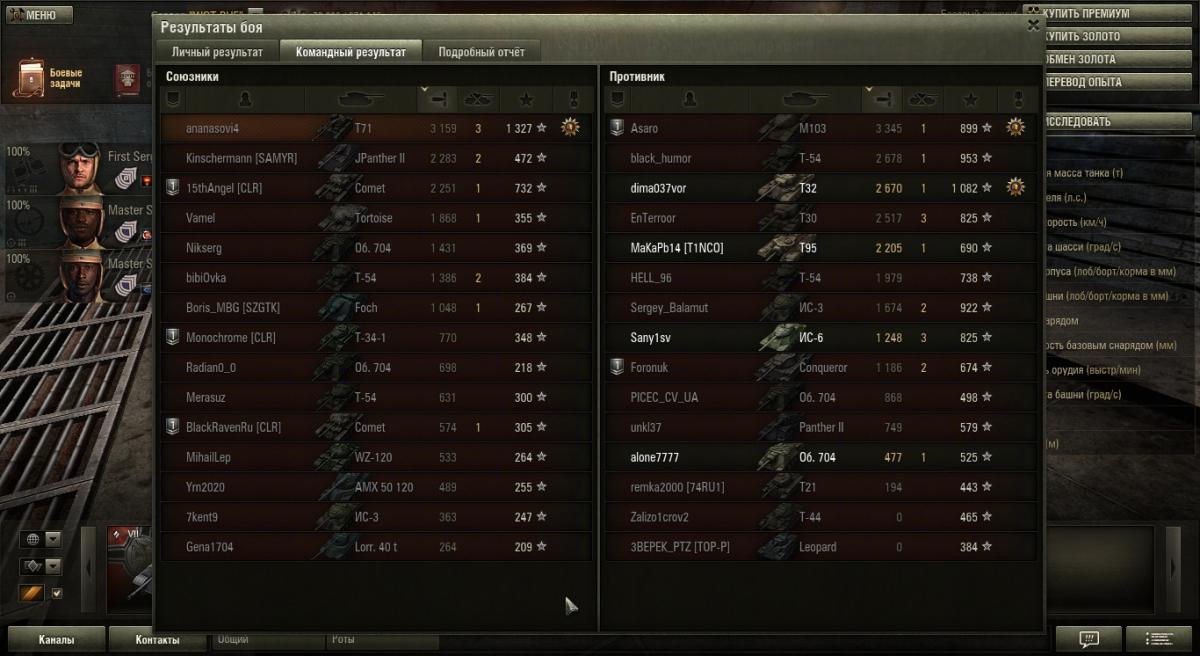 продал сей агрегат. неоднозначные впечатления- удручали промахи при полном сведении. думал хоть 1800 среднего дамага будет, а в итоге 1500 http://wotreplays.ru/site/3009398#erlenberg-ananasovi4-m26_pershing предпоследний бой ПАТТОН ЖДИИИИИИ