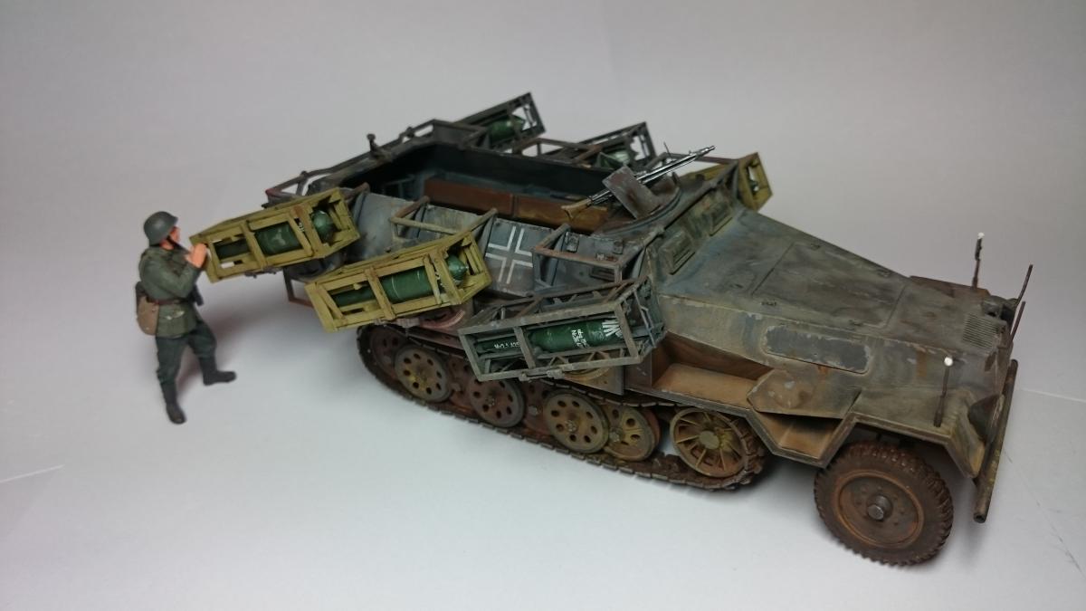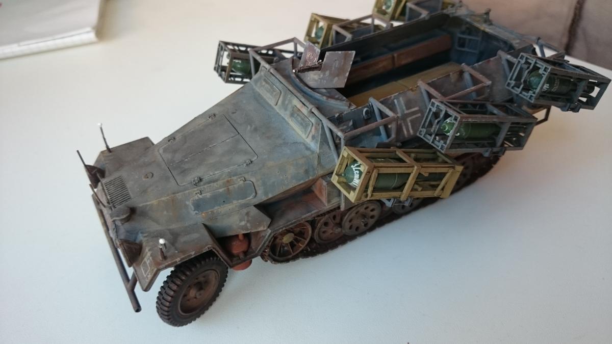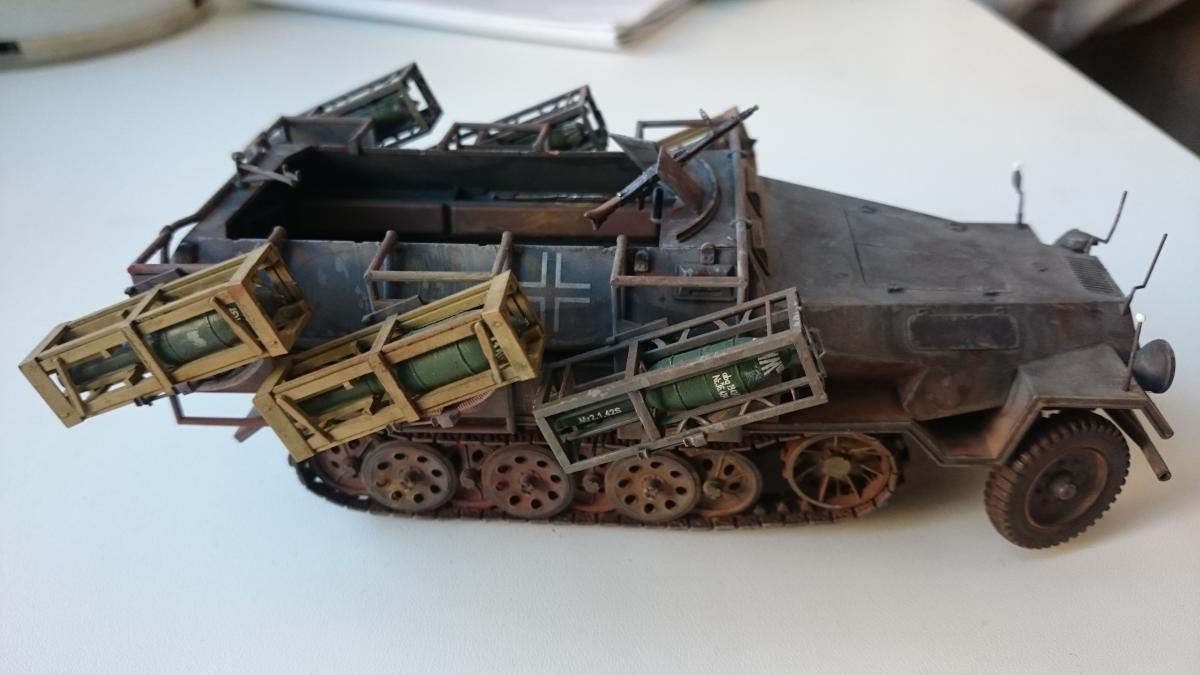 Всем привет! Решил показать сей жуткий продукт под название Ханомаг = Штука. Пластик звездовский. Машина "угрюмая", вся такая грязная и облезшая, так как тяжело ей пришлось служить в вермахте. Большей жути нагоняют шесть реактивных снарядов " ибического" калибра, ибо могли они "кашмарить" люд честной. Сын говорит что на такой машине только злодеи могли ездить,так как видок у нее злой! Парни надо бы Вам ее оценить, здоровая критика приветствуется! (Пластик - "Звезда" масштаб 1/35) P.S. (Танки это не хобби - это блин душевная болезнь!