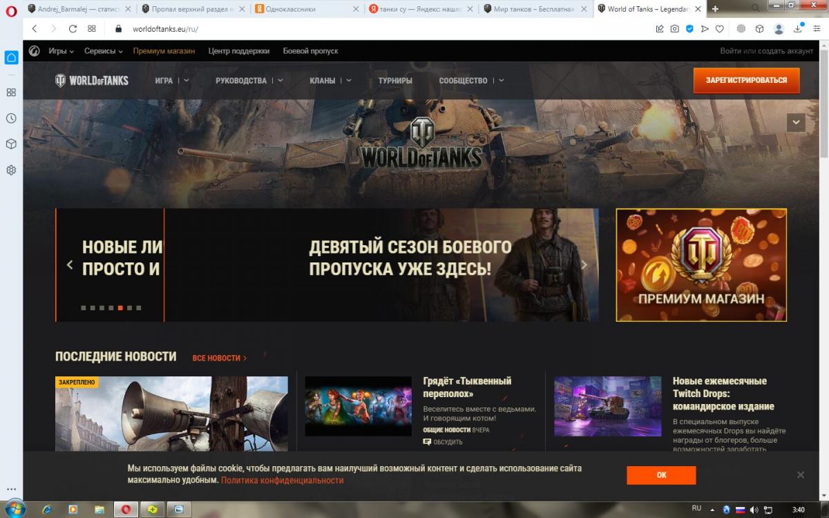 Думаю, тема больше относится к техническим вопросам... После выхода обновления, с переходом на Лесту, пропал раздел вверху на офиц. странице Лесты, а именно строчка с Боевым пропукском, сервисами, центром поддержки, прем. магазином и т.д.. А при входе именно на офиц. сайт Варгейминга все разделы эти на месте, там никуда они не исчезли. Пробывал загружать разные браузеры ( пользуюсь Оперой ) Гугл, Мозилу, Яндекс, там также как и в Опере, разделы отсутствуют. Также отсутствует вход в личный кабинет с сайта игры, то есть я не смогу при случае набрать бонус код игры. Это ужасно неудобно, я не могу пользоваться основными привилегиями игры. В службу пишу, ответов нет кучу дней. Мыслей по исправлению указанного косяка уже нет, я и переустанавливал игру, и центр, и отключал антивирус, чистил Эксплоер использовал другие браузеры, толку ноль. ПРОШУ, ПОМОГИТЕ! КАК ВЕРНУТЬ ИГРЕ РАБОЧИЙ ИНТЕРФЕЙС!
