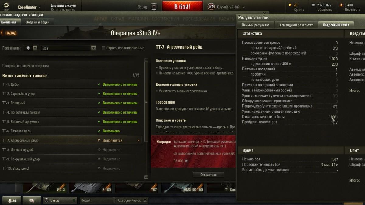 ТТ-7 . Неправильное описание задачи, при выполнении условий не выдано выполнение, ибо не учтена Ничья при успешном захвате базы. пруф -1029 дамага, 1 килл, 100процентов захвата базы, база захвачена, ничья Ах да, вопрос забыл. Кто виноват и что делать?)) Пофиксите хоть, просить зачислить задачу видимо бессмысленно так ведь?)