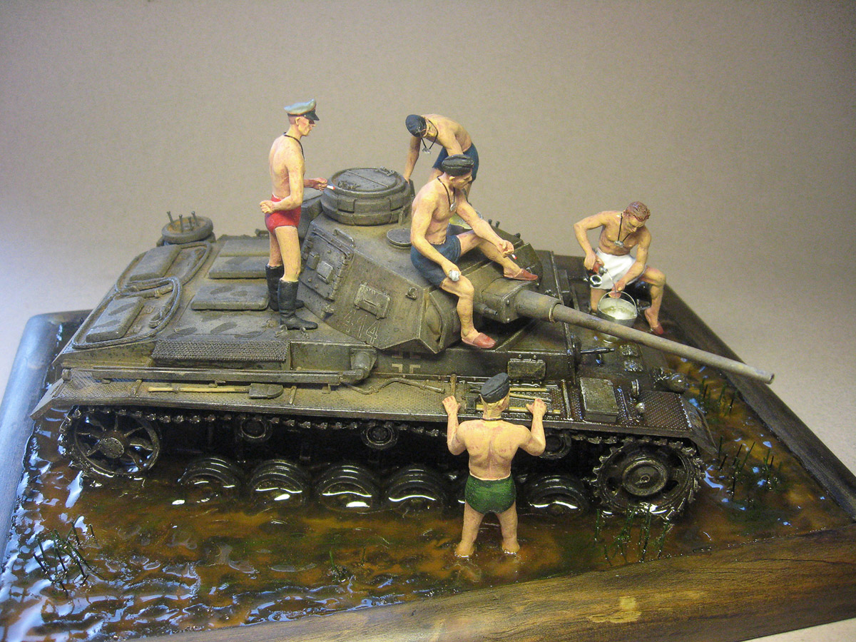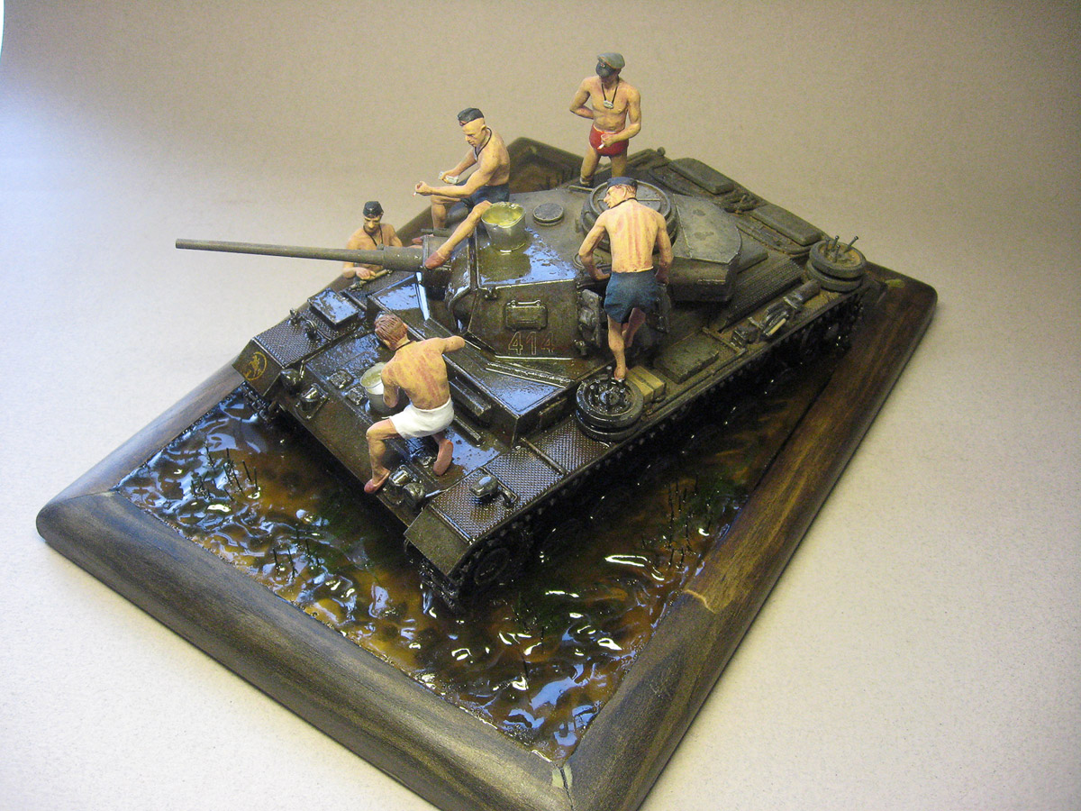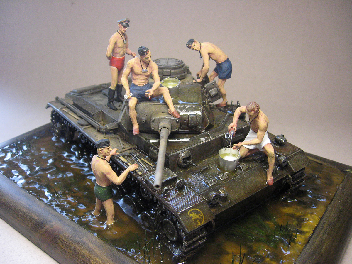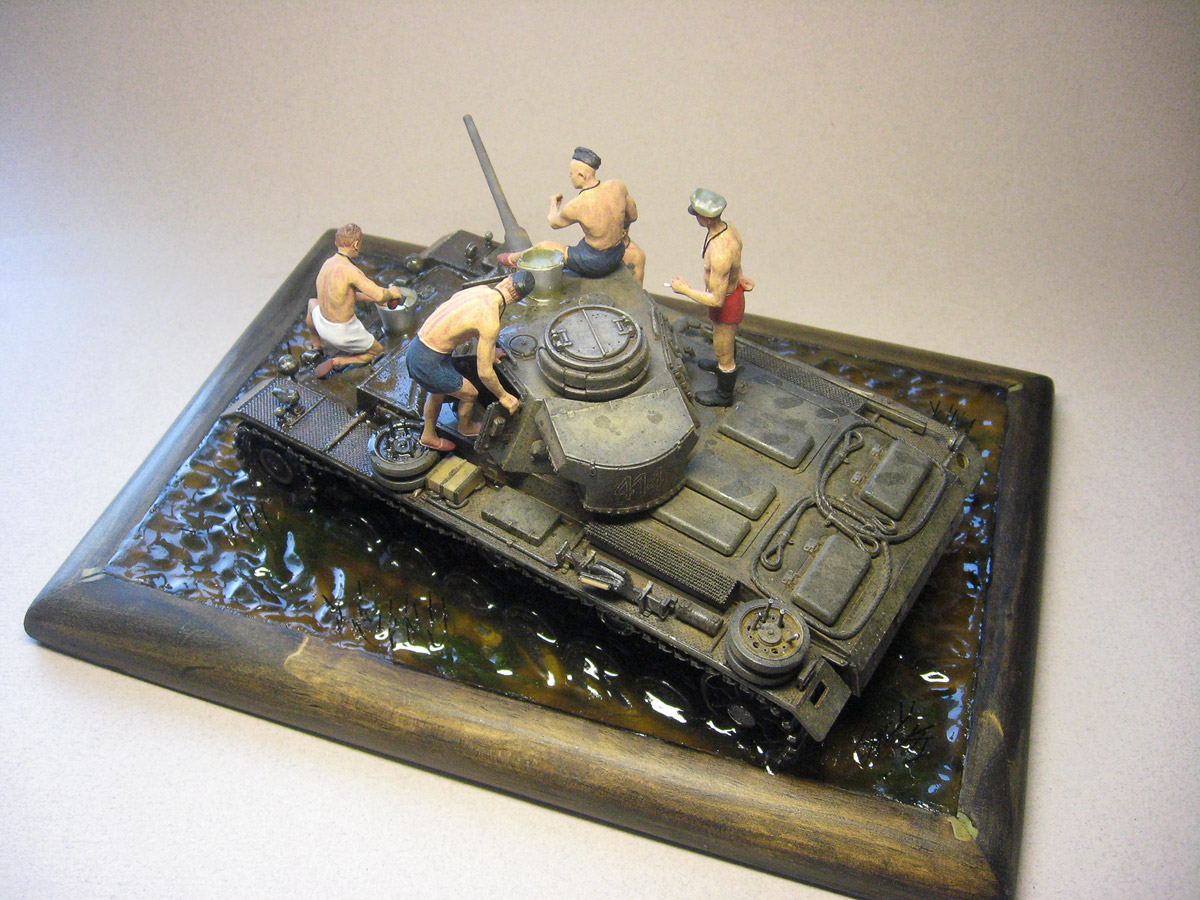 Представляю очередную диораму. Сюжет простой, мойка пыльного танка на мелководьи. Модель - "Тройка" от Тамии, дополнена деталями от Драгон. Фигурки - Немецкий танковый экипаж, Миниарт 35141 с переделками. Вода - эпоксидная смола и лак. http://cdn-frm-eu.wargaming.net/wot/ru/uploads/monthly_09_2014/post-12756862-0-17534900-1411639120_thumb.jpg http://cdn-frm-eu.wargaming.net/wot/ru/uploads/monthly_09_2014/post-12756862-0-04348700-1411639122_thumb.jpg http://cdn-frm-eu.wargaming.net/wot/ru/uploads/monthly_09_2014/post-12756862-0-97953300-1411639124_thumb.jpg http://cdn-frm-eu.wargaming.net/wot/ru/uploads/monthly_09_2014/post-12756862-0-07677500-1411639123_thumb.jpg http://cdn-frm-eu.wargaming.net/wot/ru/uploads/monthly_09_2014/post-12756862-0-11837500-1411639126_thumb.jpg http://cdn-frm-eu.wargaming.net/wot/ru/uploads/monthly_09_2014/post-12756862-0-99961500-1411639123_thumb.jpg http://cdn-frm-eu.wargaming.net/wot/ru/uploads/monthly_09_2014/post-12756862-0-11835700-1411639127_thumb.jpg http://cdn-frm-eu.wargaming.net/wot/ru/uploads/monthly_09_2014/post-12756862-0-14438100-1411639128_thumb.jpg http://cdn-frm-eu.wargaming.net/wot/ru/uploads/monthly_09_2014/post-12756862-0-12795800-1411639129_thumb.jpg