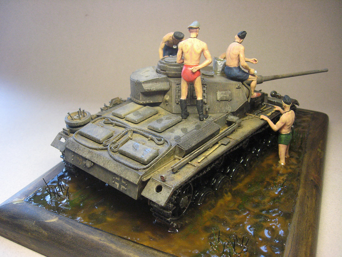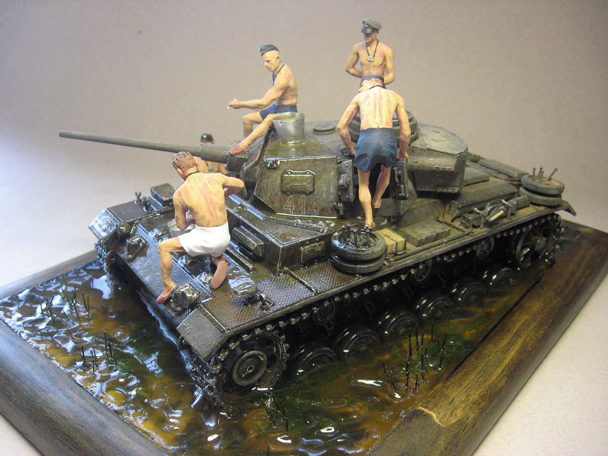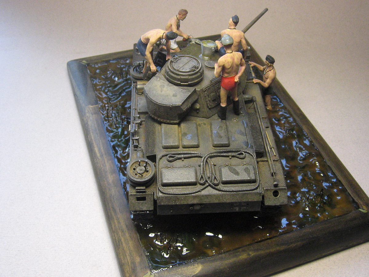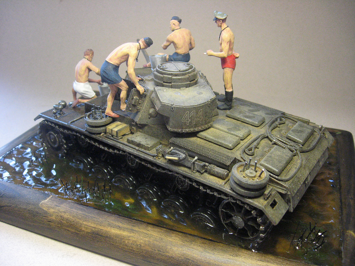 Представляю очередную диораму. Сюжет простой, мойка пыльного танка на мелководьи. Модель - "Тройка" от Тамии, дополнена деталями от Драгон. Фигурки - Немецкий танковый экипаж, Миниарт 35141 с переделками. Вода - эпоксидная смола и лак. http://cdn-frm-eu.wargaming.net/wot/ru/uploads/monthly_09_2014/post-12756862-0-17534900-1411639120_thumb.jpg http://cdn-frm-eu.wargaming.net/wot/ru/uploads/monthly_09_2014/post-12756862-0-04348700-1411639122_thumb.jpg http://cdn-frm-eu.wargaming.net/wot/ru/uploads/monthly_09_2014/post-12756862-0-97953300-1411639124_thumb.jpg http://cdn-frm-eu.wargaming.net/wot/ru/uploads/monthly_09_2014/post-12756862-0-07677500-1411639123_thumb.jpg http://cdn-frm-eu.wargaming.net/wot/ru/uploads/monthly_09_2014/post-12756862-0-11837500-1411639126_thumb.jpg http://cdn-frm-eu.wargaming.net/wot/ru/uploads/monthly_09_2014/post-12756862-0-99961500-1411639123_thumb.jpg http://cdn-frm-eu.wargaming.net/wot/ru/uploads/monthly_09_2014/post-12756862-0-11835700-1411639127_thumb.jpg http://cdn-frm-eu.wargaming.net/wot/ru/uploads/monthly_09_2014/post-12756862-0-14438100-1411639128_thumb.jpg http://cdn-frm-eu.wargaming.net/wot/ru/uploads/monthly_09_2014/post-12756862-0-12795800-1411639129_thumb.jpg
