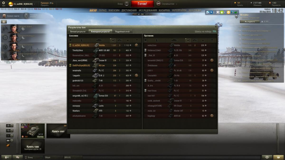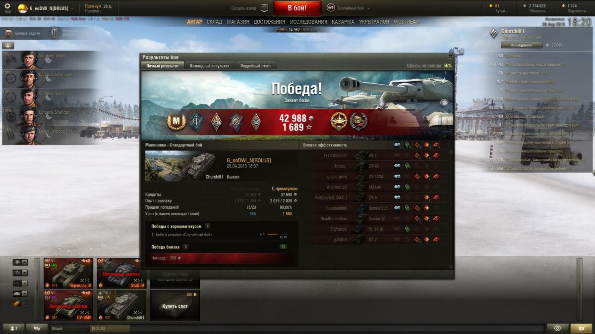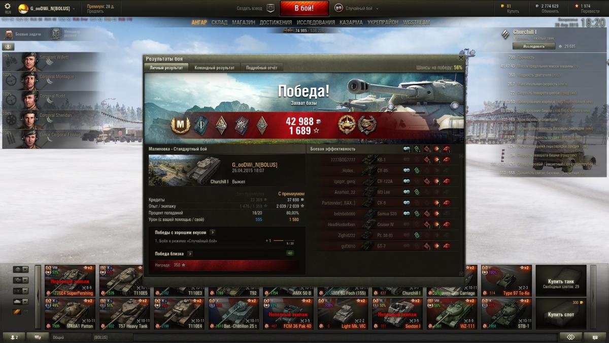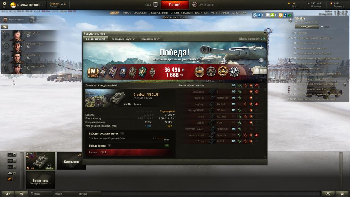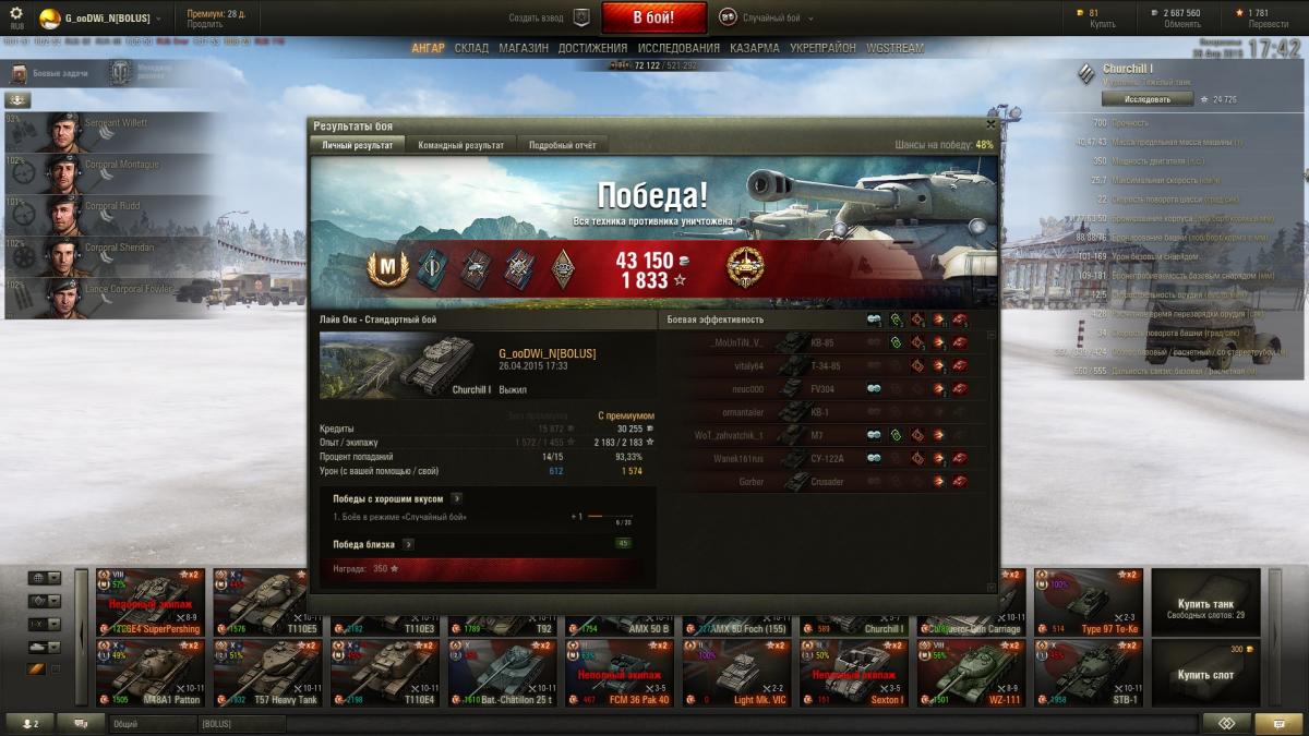 Интересный танк, в ангаре есть Черч3 так что немного понимал что беру. Прошел его за один день даже сам удивился, открыл и пт и Черча. Что удивило так мастера через бой, сначала скринил потом уже надоело, ниже выложил несколько скринов.