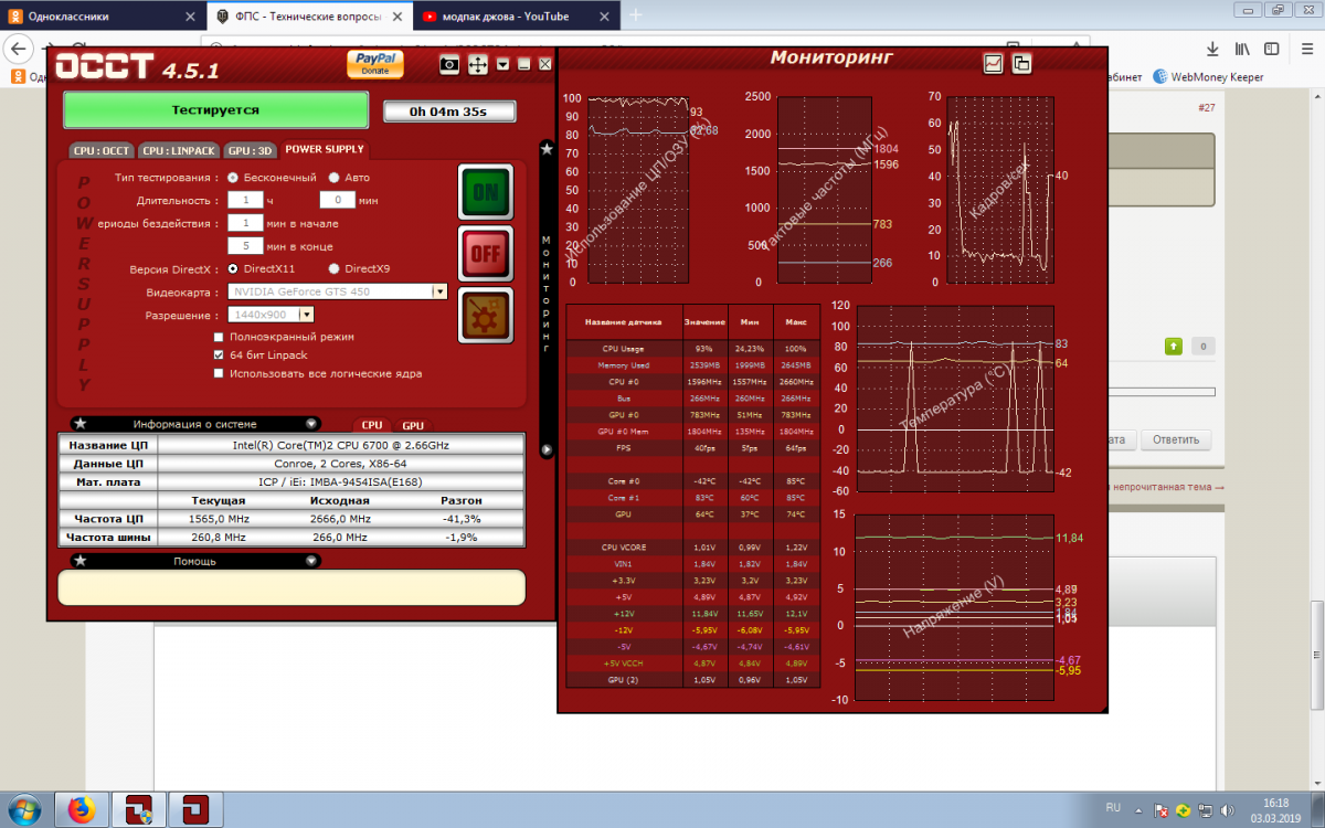 http://cdn-frm-eu.wargaming.net/4.5/style_images/wg/snapback.pngZloyBut (03 Мар 2019 - 09:06) писал: Два вопроса. 1. Что вы называете "последней обновой"? 2. Скачайте вот этот тест OCCT сделайте тестирование в режиме Power Supply. Сколько идет тест и какие температуры показывает? Патч 1.4
