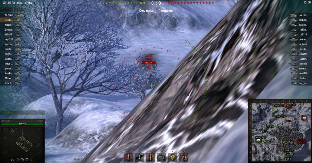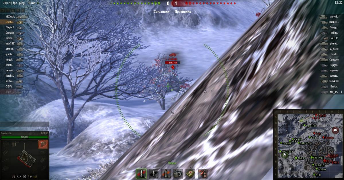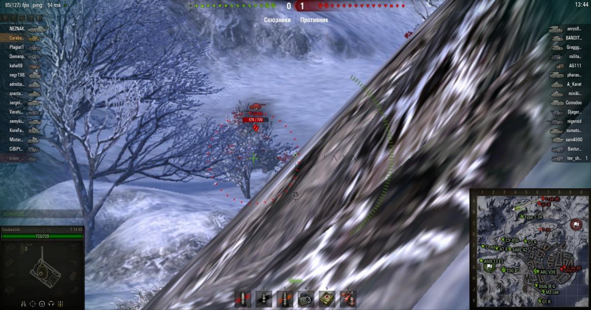 http://wotreplays.ru/site/5296287#vindstorm-carabanchik-t-34-85 Описание есть в реплее, но повторюсь. Бой Зимний Винсторм. Я на т-34-85 выхожу на левый фланг. Выкатываясь из-за горки ВИЖУ вражеский т-34-85, прицеливаюсь и ... не попадаю! Выкатываюсь второй раз. Вижу врага, навожусь ... и вдруг понимаю, что насмотря на то, что я его ВИЖУ он не окантовывается красным в прицеле. Естественно я не попадаю. Проверяю третий раз. Тоже самое. Я танк вижу, а игровой клиент отрицает, что противник в пределах поражения. Вопрос: это баг или читерство? P.S. Просмотрел и с модами, и на чистом клиенте. Вопрос остаётся в силе.