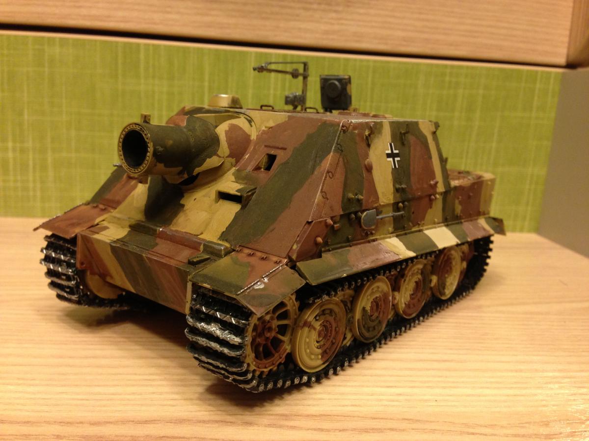 Так я ни на что и не претендую, собираю ради своего удовольствия и в свободное время. Например две-три модели с перерывом месяца полтора. Последний такой заход - Штурмтигр, СУ-100 и Е100 после около двух месяцев с прошедшей серии. К тому же, среди моих друзей я единственный занимаюсь такими вещами, поэтому вживую мне сравнивать нечем. Ну и да, сам заметил , что "полосатые" камуфляжи ни ахти получаются, надо наверное с ним заканчивать, пока аэрограф не куплю и делать только модели со сплошной покраской.