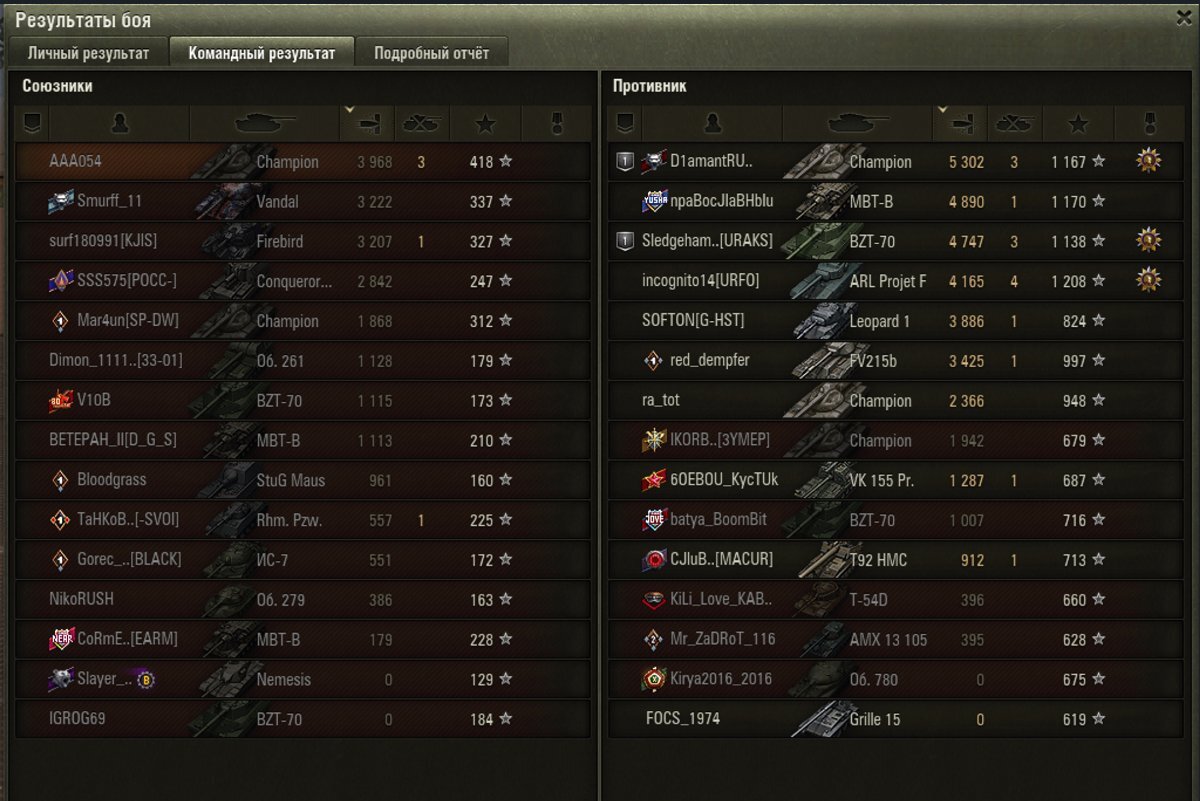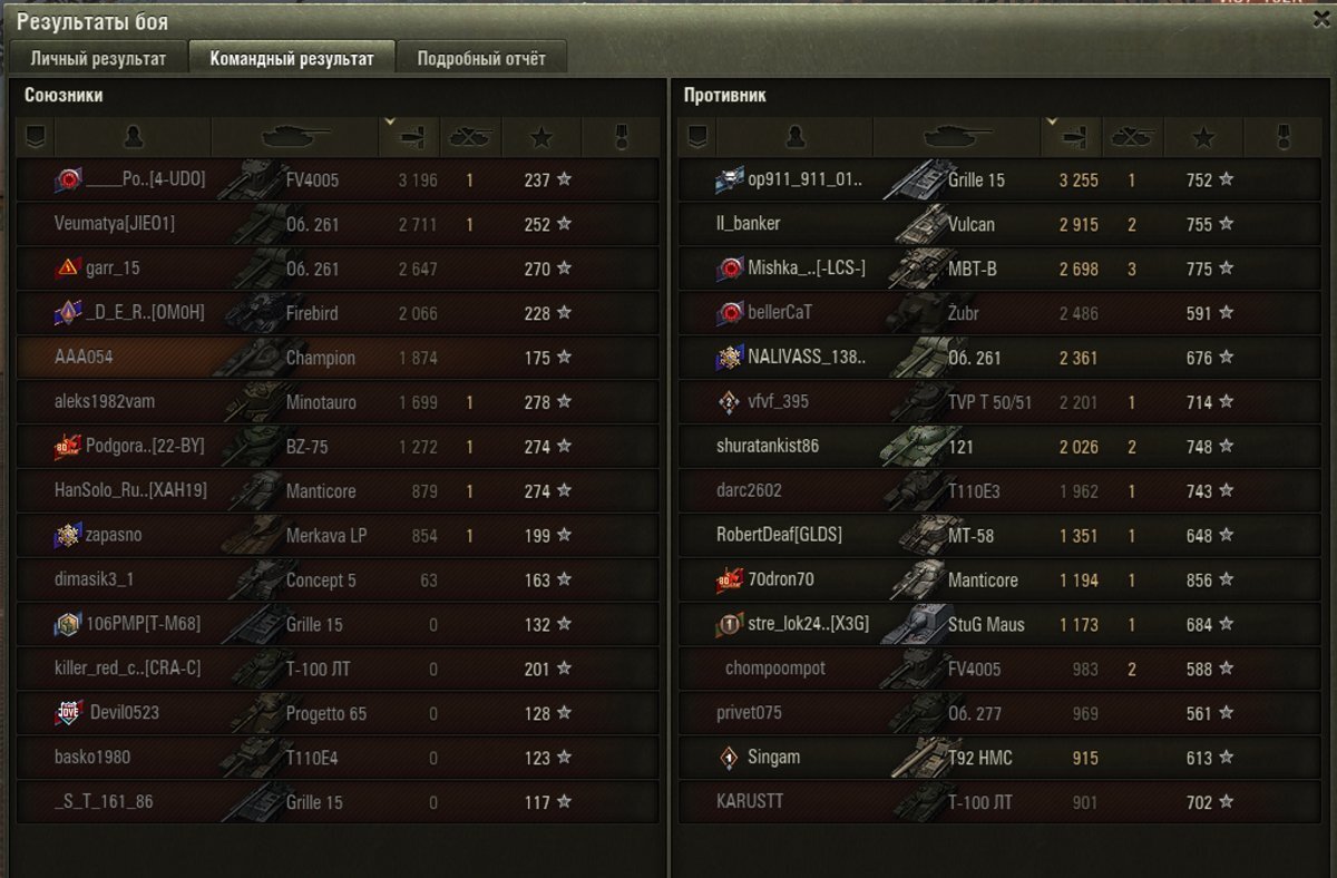 Тяжи в целом - танки для алкашей ) Когда-то я как и все качал ис7, ис4, е100, мауса... Но эта игра так сделана, что с плохой маскировкой ты слишком уязвим. Ты светишься с респа, сам никого из-за той же маскировки не видишь (дичь, когда тот же ебр или нурсовозка стоит в 250 метрах от тяжа, а он ее не видит... в чистом поле, Карл!), по КД получаешь по щам, вынужден вечно тереться где-то в городе, углы там обтирать, как бездомный пёс. И если на мбт-б ты еще можешь и быстро метаться по карте, и на ульте забрать противника, не получив в ответ, этакий полуСТ, то на Чемпе приходится тусить с тяжами. Которых ты априори не уважаешь, еще и потому, что на тяжах играют как правило те, кто слабее в скиле и не могут играть вариативно, как позволяют делать СТ или ПТ. PS Сегодня был бой. http://cdn-frm-ru.lesta.ru/wotruby/ru/uploads/monthly_03_2026/post-131687764-0-38911400-1774872591_thumb.jpg Игрок в команде напротив на Чемпе конечно неплох. http://cdn-frm-ru.lesta.ru/wotruby/ru/uploads/monthly_03_2026/post-131687764-0-83768400-1774872668_thumb.jpg Есть ли у него скил?? А вот х.з. Мои боты на тэт-100, бзт, ис7, 60тп в ущелье Ласвиля строго по одному выезжали лбом на него, а он просто стоял и настреливал урон. Не сходя с места. Очень бесит, что я играю в командах ботов, умеющих только отдаваться. Сплошные актеры вокруг... http://cdn-frm-ru.lesta.ru/wotruby/ru/uploads/monthly_03_2026/post-131687764-0-65864700-1774872684_thumb.jpg Вот все понимаю в этой игре, но не понимаю, почему так работает балансировщик? Что хочет добиться? Чтобы клиент ушел? Денег точно не дам, вот назло. Балалайку, а не деньги ) http://cdn-frm-ru.lesta.ru/wotruby/ru/uploads/monthly_03_2026/post-131687764-0-33623200-1774872755_thumb.jpghttp://cdn-frm-ru.lesta.ru/wotruby/ru/uploads/monthly_03_2026/post-131687764-0-38526500-1774872770_thumb.jpg И что интересно. Включаешь стрим, там стример едет в один из трех коридоров и настреливает там. Его команда в двух других коридорах тоже выпиливает всех. В итоге победа за победой. Тут сядешь покатать, слив, слив, слив, слив... Как это воспринимать? Как будто живешь в микрорайоне, где в маршрутках ездят одни бомжи-сифаки. Тут, похоже, только смена места жительства поможет.