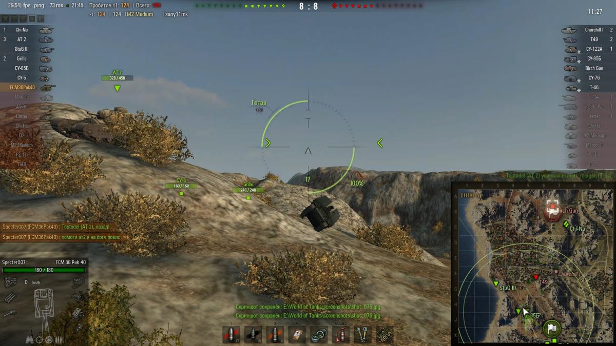 Всем привет! Не секрет, что в обновлении 0.8.10 добавлена возможность простреливать бронебойными и подкалиберными снарядами мелкие объекты: заборы, скамейки, столбики. При прохождении через такие объекты бронепробитие бронебойного и подкалиберного снаряда уменьшается на 25мм за каждый простреленный объект. Многие об этом знаю и успешно используют такую возможность в бою. Но сушествует некоторые сложности при такой стрельбе. Так весьма затруднительно прицелиться через несколько препятствий в противника не видя его контур. Для себя я открыл один замечательный способ, который не всегда, но часто помогает мне успешно стрелять через препятствия. Как ни странно но я использую автоприцел. Не имея возможности прицелиться через несколько препятствий я отдаляю камеру и в свободном режиме спокойно беру противника в автоприцел. После чего произвожу выстрел. Заметьте, мне не нужно вести танк, который не стоит на месте, по всему забору. Если противник скроется за непробиваемое препятствие автоприцел сбросится, что есть хорошо, т.к. мы не будем попусту тартить время на угадайку. Небольшой пример боя, стрельба по объекту 704, Waffenträger auf Pz. IV, AMX 50 120.