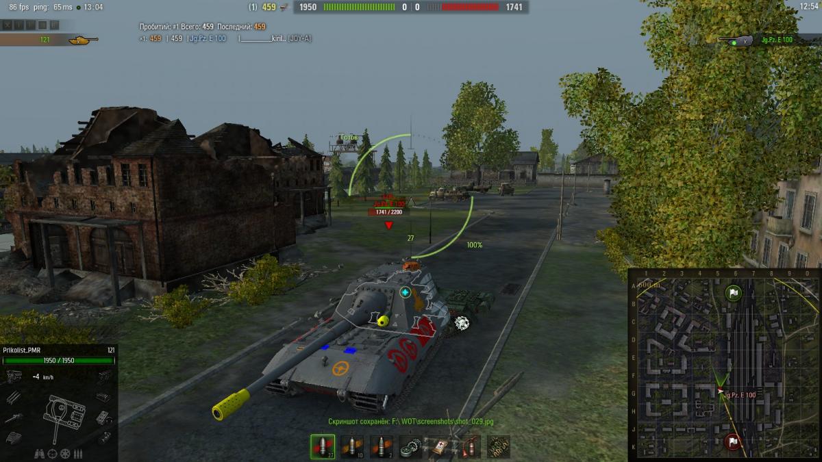2. В процессе игры не раз замечалось что снаряд пролетает сквозь танк, чаще всего это объяснялось пингом или высказыванием смените провайдера. Но попробуйте объяснить следующее: как снаряд может пролетать сквозь рубку Jagdpanzer E 100, при том что стволы в WOT не материальные(что само по себе отвергает отговорки про длину дула). Снаряд пролетает правда при 1ом условии, ты в плотную к танку, дуло торчит на сквозь и танк должен пятиться назад, если же ты заехал в корму и танк стоит то снаряд наносит урон, как только он снова начинает движение снаряды идут насквозь. Вангую разговоры про длину дула торчащего насквозь, но случается следующее, в дуло которое торчит проходят криты от танка у которого ты в корме. С ягой е 100 ешё ладно у неё есть длинный корпус в который всё же можно прострелить, но такие "прострелы" происходили и с артой, естественно при условии что она пятиться. Пара скринов для наглядного понимания как это происходит. Как писать реплэи в тренировке не знаю записал бы.