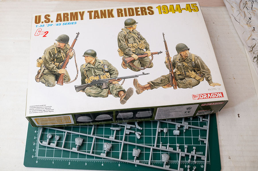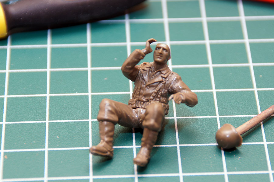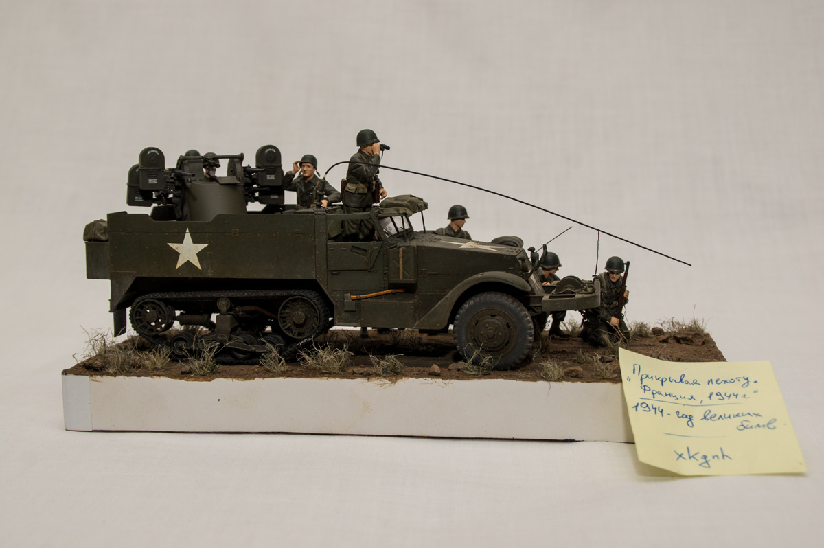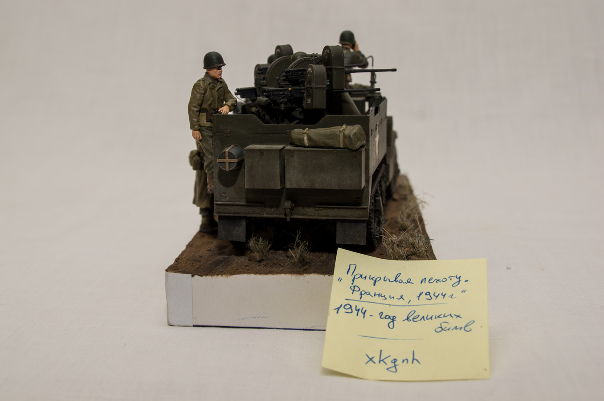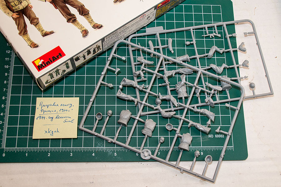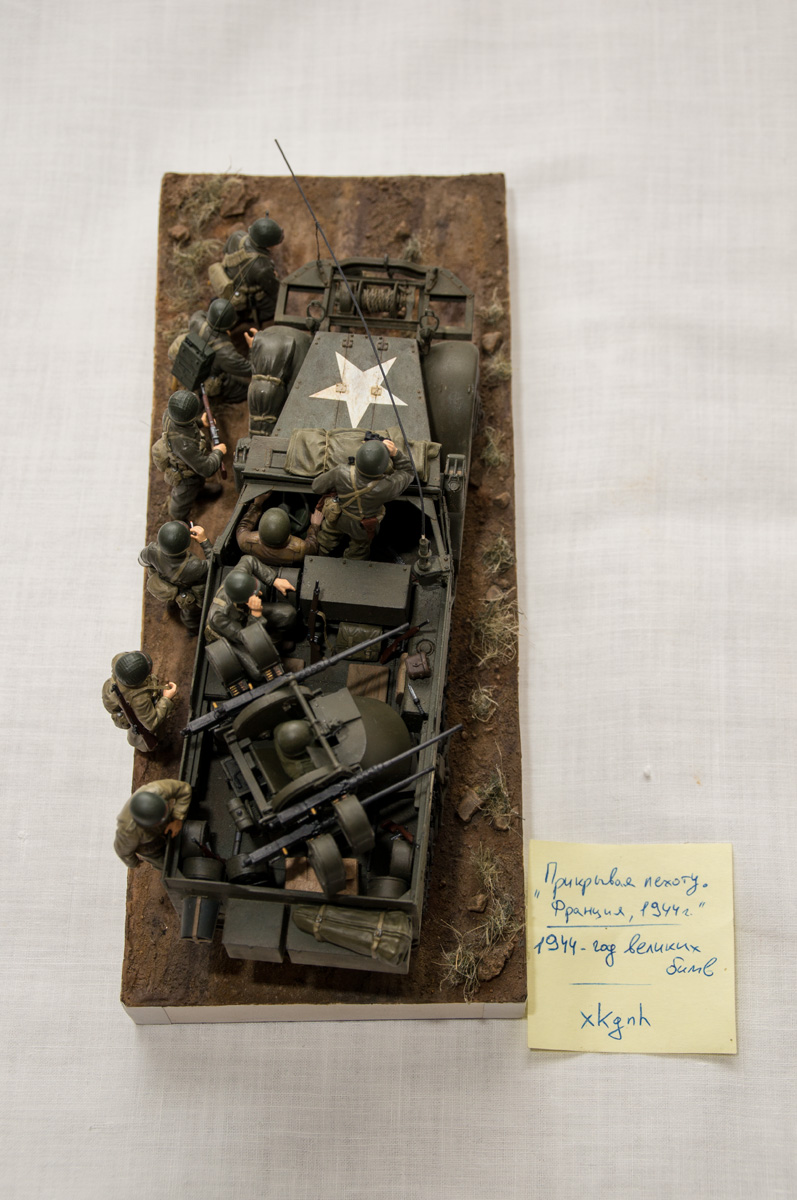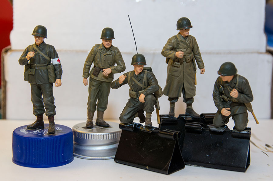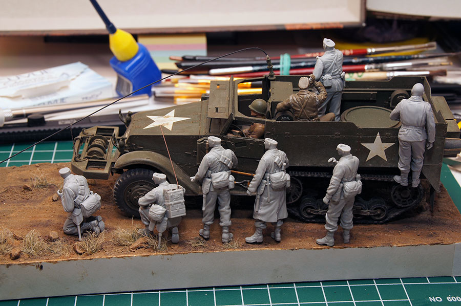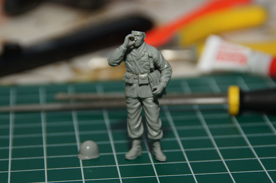 Следующие - заряжающие зенитной установки. Первый - из набора MIniArt. Минимум деталей. Качество норм. Без каски похож на Фантомаса http://cdn-frm-eu.wargaming.net/wot/ru/uploads/monthly_07_2014/post-11027791-0-58394900-1406616345_thumb.jpg http://cdn-frm-eu.wargaming.net/wot/ru/uploads/monthly_07_2014/post-11027791-0-15404500-1406616375_thumb.jpg http://cdn-frm-eu.wargaming.net/wot/ru/uploads/monthly_07_2014/post-11027791-0-50655700-1406616380_thumb.jpg Второй - из древнего набора Тамии под названием "Американская штурмовая группа на отдыхе" (хотя это полноценный набор с экипажем хаф-трака, кроме водилы). Деталировка еще скромнее. http://cdn-frm-eu.wargaming.net/wot/ru/uploads/monthly_07_2014/post-11027791-0-07833900-1406616606_thumb.jpg http://cdn-frm-eu.wargaming.net/wot/ru/uploads/monthly_07_2014/post-11027791-0-05491600-1406616644_thumb.jpg У этого персонажа "одеты" подсумки для винтовки Гаранд, но экипажи ЗСУ не оснащались такой винтовкой. На 5-х у них были: один Томпсон (для командира), три Винчестера и одна винтовка Springfield M1903 (с наствольным гранатометом). Наверно для водителя, но точных данных у меня нет, поэтому предположим, что она у заряжающего) Изучая старые фото, определил, что, в принципе, подсумки у Гаранда и Спрингфилда можно считать одинаковыми, так что оставил все как есть. http://cdn-frm-eu.wargaming.net/wot/ru/uploads/monthly_07_2014/post-11027791-0-18101600-1406616811_thumb.jpg http://cdn-frm-eu.wargaming.net/wot/ru/uploads/monthly_07_2014/post-11027791-0-44984400-1406616926_thumb.jpg Далее, командир ЗСУ. Собран из двух "человек" из набора Драгона: собственно командира (верх) и рядового (низ), т.к. по замыслу он стоит в машине и наблюдает в бинокль за обстановкой. Расчлененку забыл сфоткать, но деталировка там неплохая. http://cdn-frm-eu.wargaming.net/wot/ru/uploads/monthly_07_2014/post-11027791-0-13986400-1406616910_thumb.jpg И последний "участник боя" - пехотинец, выглядывающий из-за бронемашины. Он из набора Драгона "Танковый десант" второго поколения (Gen2). Качество и деталировка совершенно другого уровня, есть фототравление, даже погоны даны отдельными деталями. Обработки потребовалось минимум. http://cdn-frm-eu.wargaming.net/wot/ru/uploads/monthly_07_2014/post-11027791-0-83950800-1406617112_thumb.jpg http://cdn-frm-eu.wargaming.net/wot/ru/uploads/monthly_07_2014/post-11027791-0-64683600-1406617068_thumb.jpg http://cdn-frm-eu.wargaming.net/wot/ru/uploads/monthly_07_2014/post-11027791-0-20167100-1406617075_thumb.jpg http://cdn-frm-eu.wargaming.net/wot/ru/uploads/monthly_07_2014/post-11027791-0-19594400-1406617082_thumb.jpg Вся гвардия в сборе, хорошо заметна разница в качестве литья: http://cdn-frm-eu.wargaming.net/wot/ru/uploads/monthly_07_2014/post-11027791-0-68186600-1406617766_thumb.jpg Примеряю фигуры на диораме: http://cdn-frm-eu.wargaming.net/wot/ru/uploads/monthly_07_2014/post-11027791-0-10199400-1406617783_thumb.jpg Далее грунтовка, контроль дефектов и буду окрашивать, наконец)