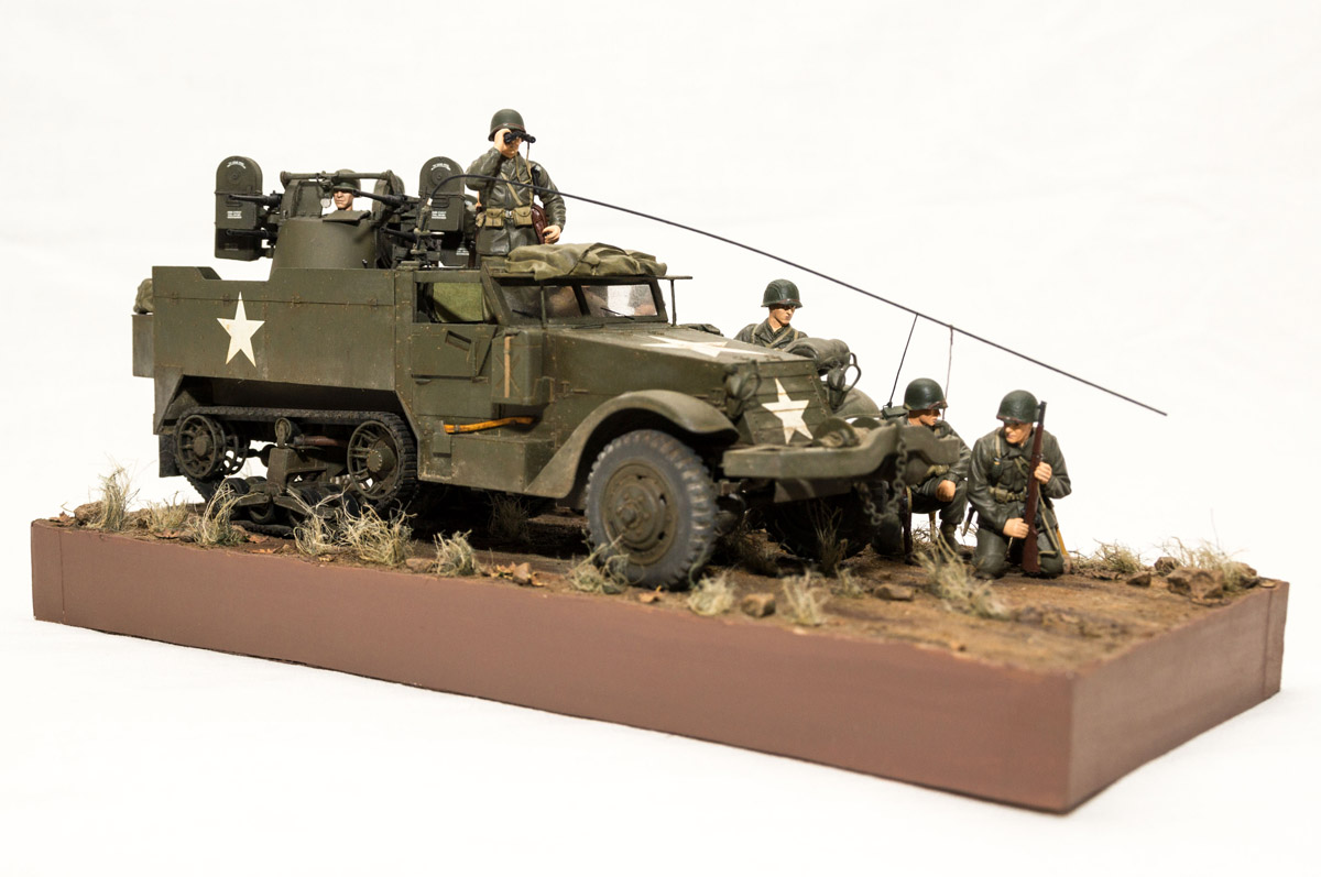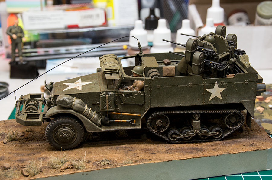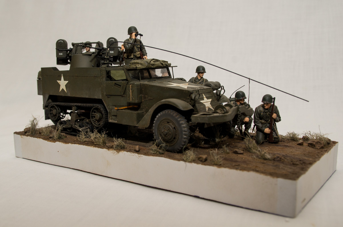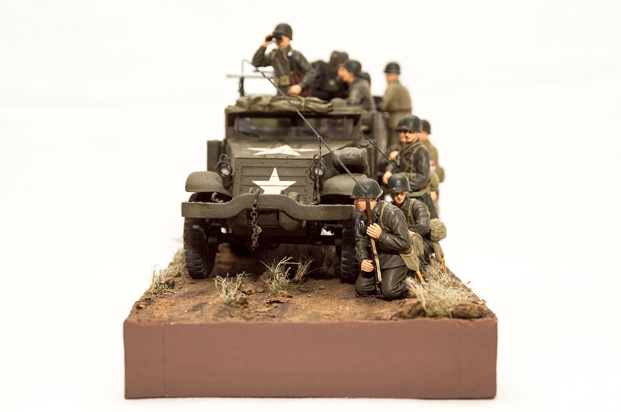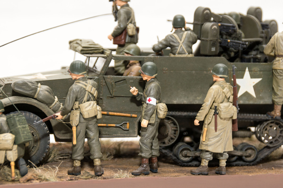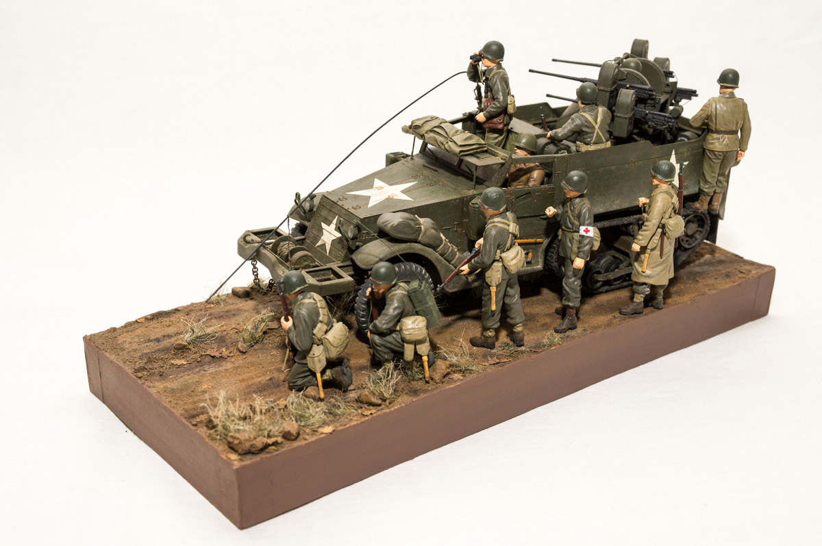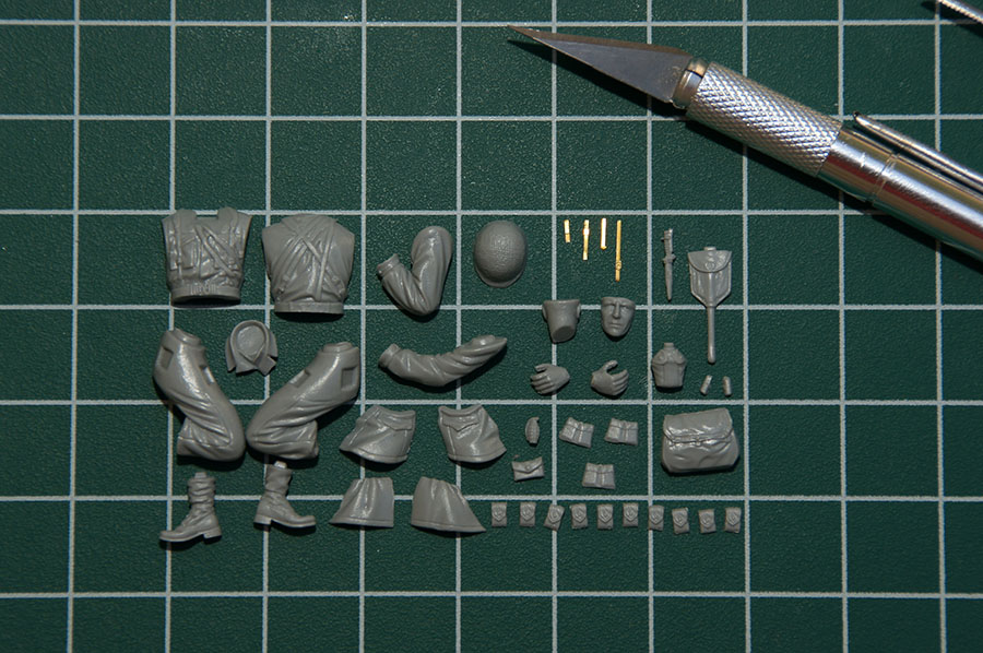 Следующие - заряжающие зенитной установки. Первый - из набора MIniArt. Минимум деталей. Качество норм. Без каски похож на Фантомаса http://cdn-frm-eu.wargaming.net/wot/ru/uploads/monthly_07_2014/post-11027791-0-58394900-1406616345_thumb.jpg http://cdn-frm-eu.wargaming.net/wot/ru/uploads/monthly_07_2014/post-11027791-0-15404500-1406616375_thumb.jpg http://cdn-frm-eu.wargaming.net/wot/ru/uploads/monthly_07_2014/post-11027791-0-50655700-1406616380_thumb.jpg Второй - из древнего набора Тамии под названием "Американская штурмовая группа на отдыхе" (хотя это полноценный набор с экипажем хаф-трака, кроме водилы). Деталировка еще скромнее. http://cdn-frm-eu.wargaming.net/wot/ru/uploads/monthly_07_2014/post-11027791-0-07833900-1406616606_thumb.jpg http://cdn-frm-eu.wargaming.net/wot/ru/uploads/monthly_07_2014/post-11027791-0-05491600-1406616644_thumb.jpg У этого персонажа "одеты" подсумки для винтовки Гаранд, но экипажи ЗСУ не оснащались такой винтовкой. На 5-х у них были: один Томпсон (для командира), три Винчестера и одна винтовка Springfield M1903 (с наствольным гранатометом). Наверно для водителя, но точных данных у меня нет, поэтому предположим, что она у заряжающего) Изучая старые фото, определил, что, в принципе, подсумки у Гаранда и Спрингфилда можно считать одинаковыми, так что оставил все как есть. http://cdn-frm-eu.wargaming.net/wot/ru/uploads/monthly_07_2014/post-11027791-0-18101600-1406616811_thumb.jpg http://cdn-frm-eu.wargaming.net/wot/ru/uploads/monthly_07_2014/post-11027791-0-44984400-1406616926_thumb.jpg Далее, командир ЗСУ. Собран из двух "человек" из набора Драгона: собственно командира (верх) и рядового (низ), т.к. по замыслу он стоит в машине и наблюдает в бинокль за обстановкой. Расчлененку забыл сфоткать, но деталировка там неплохая. http://cdn-frm-eu.wargaming.net/wot/ru/uploads/monthly_07_2014/post-11027791-0-13986400-1406616910_thumb.jpg И последний "участник боя" - пехотинец, выглядывающий из-за бронемашины. Он из набора Драгона "Танковый десант" второго поколения (Gen2). Качество и деталировка совершенно другого уровня, есть фототравление, даже погоны даны отдельными деталями. Обработки потребовалось минимум. http://cdn-frm-eu.wargaming.net/wot/ru/uploads/monthly_07_2014/post-11027791-0-83950800-1406617112_thumb.jpg http://cdn-frm-eu.wargaming.net/wot/ru/uploads/monthly_07_2014/post-11027791-0-64683600-1406617068_thumb.jpg http://cdn-frm-eu.wargaming.net/wot/ru/uploads/monthly_07_2014/post-11027791-0-20167100-1406617075_thumb.jpg http://cdn-frm-eu.wargaming.net/wot/ru/uploads/monthly_07_2014/post-11027791-0-19594400-1406617082_thumb.jpg Вся гвардия в сборе, хорошо заметна разница в качестве литья: http://cdn-frm-eu.wargaming.net/wot/ru/uploads/monthly_07_2014/post-11027791-0-68186600-1406617766_thumb.jpg Примеряю фигуры на диораме: http://cdn-frm-eu.wargaming.net/wot/ru/uploads/monthly_07_2014/post-11027791-0-10199400-1406617783_thumb.jpg Далее грунтовка, контроль дефектов и буду окрашивать, наконец)