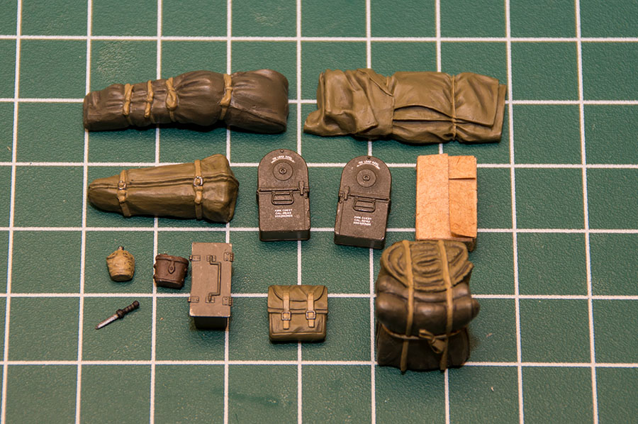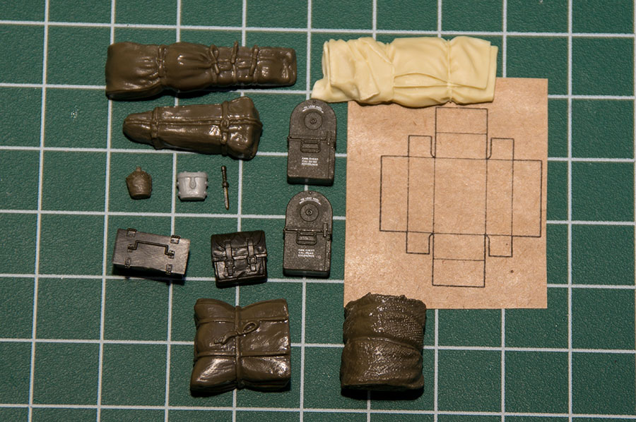 Из разных наборов насобирал скатки и разную мелочевку в кузов. Толстую длинную скатку пришлось греть горячим воздухом и изгибать, чтобы "уложить" на крыло автомобиля: Окрасил и тонировал. http://cdn-frm-eu.wargaming.net/wot/ru/uploads/monthly_08_2014/post-11027791-0-98126300-1408230737_thumb.jpg http://cdn-frm-eu.wargaming.net/wot/ru/uploads/monthly_08_2014/post-11027791-0-78383500-1408230738_thumb.jpg http://cdn-frm-eu.wargaming.net/wot/ru/uploads/monthly_08_2014/post-11027791-0-48839600-1408230739_thumb.jpg Разместил все это на машине, установил в кузов турель. http://cdn-frm-eu.wargaming.net/wot/ru/uploads/monthly_08_2014/post-11027791-0-18056100-1408230740_thumb.jpg Завершаю работу с фигурками: расписываю головы, тонирую одежду, "надеваю" шлемы, "выдаю" оружие. Тонировку делаю на скорую руку, не лессировками темперой, а прям акрилом чуть темнее-чуть светлее, получается грубовато, но иначе мне не успеть все доделать. Первые трое готовы: http://cdn-frm-eu.wargaming.net/wot/ru/uploads/monthly_08_2014/post-11027791-0-86692900-1408230740_thumb.jpg