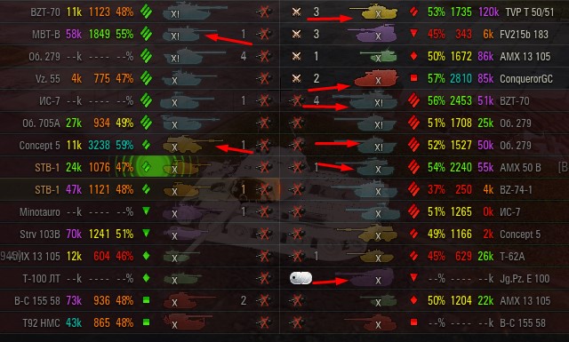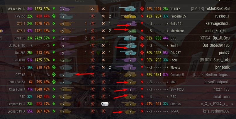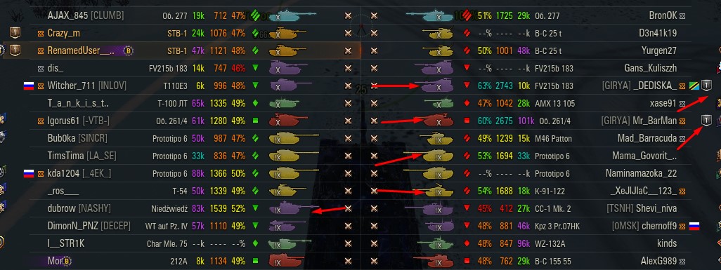 я вижу скрытый повод унизить меня на его основании, но есть одим момент, в чем смысл кататься взводом, если я буду занята боем и не увижу всей твоей эффективности, которую оцениваю на основании временных действий в бою, что можно понять только по реплею? Вот смотри реплеи Кощея во взводе со мной. Кощей любит тявкать, но такой же рак, как и я. Смотри, сравнивай, там все видно http://tankireplays.lesta.ru/site/14515268 http://tankireplays.lesta.ru/site/14515269http://tankireplays.lesta.ru/site/14515270http://tankireplays.lesta.ru/site/14515271http://tankireplays.lesta.ru/site/14515272http://tankireplays.lesta.ru/site/14515273