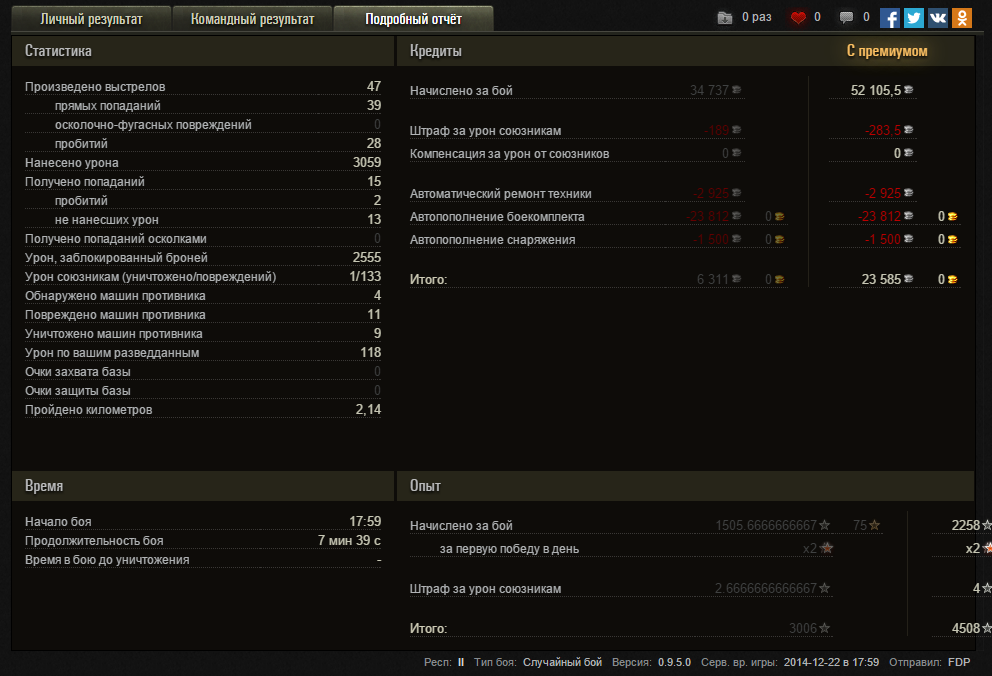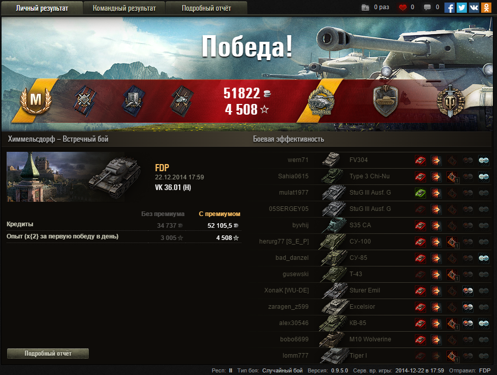 Изначально когда пришел в игру была мечта ис3 купить). В последние 2 недели вообще не идет, 65-80% поражений -2% побед уже сделал. Боеукладка каждый бой крит! Раньше думал что тигр 1 в этом лидер, но теперь его опередил ис3, на тигре все же заметно реже критикуют теперь. А так, танк вроде хорош, уж очень рикошетный он, приятно. В умелых руках крут, но в средне-статистических раковых, в последнее время видимо загибается совсем, с чем связано непонятно. И меня он достал, и сегодня я его продал)) Может в ХД ему вернут былую славу, посмотрим.