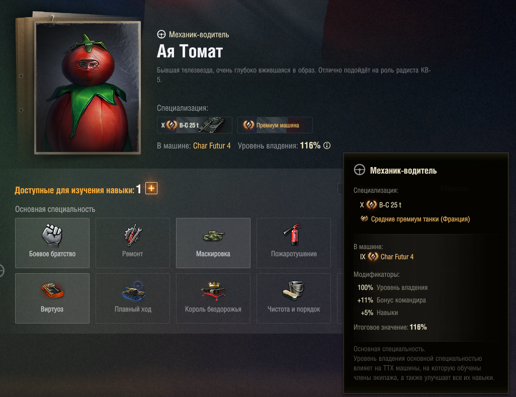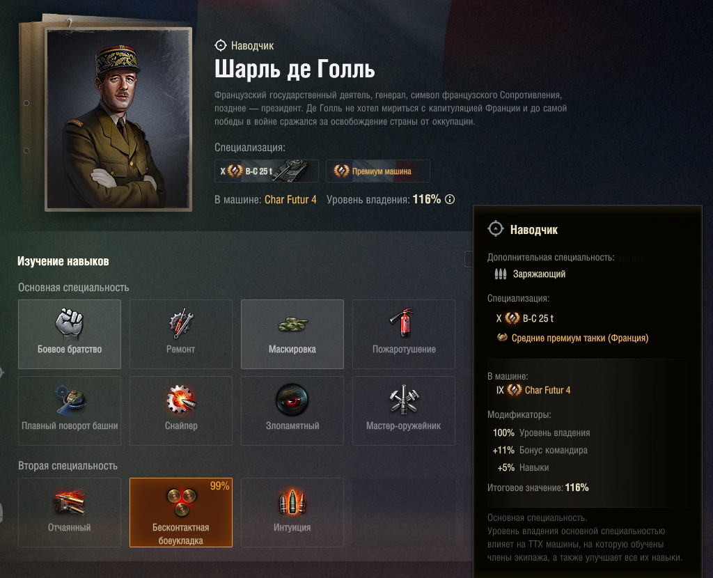 Идея хорошая, согласен! Ещё можно в случае, если выбор отключён, заменить текст на кнопке на "отключено" А ещё меня смущает расположение текста с опытом: Какой логикой руководствовались, когда решили его повесить поверх одной из табличек? Удобно, капец и читаемость прекрасная, даже не нужно хлебалом в монитор влипать, чтобы разглядеть, что там написано. Не логичнее было его НАД картинкой танка расположить, где целый гектар свободного пространства? Можно ещё затенение под текст положить, или рамку какую-нибудь сделать контрастную (чёрную), чтобы серый текст на сером фоне не долбоглазить.
