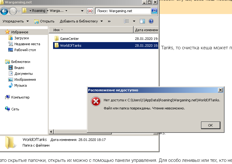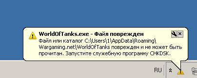 C:/Users/1/AppData/Roaming/Wargaming.net/worldoftanks повреждён . установил игру запустив ее только зайдя в игру выключился компьютер и после этого пишет такую ошибку , востанавление игры не помогло , игра установлена ни диске D с лаунчером, запустив диспетчер задач видно что при открытии игры выбивает ошибку и вследующий момент уже два ексе файла запущено закрыв один что с большей оперативкой занял место открывается новый пока не закроешь тот exe где мало оперативки .