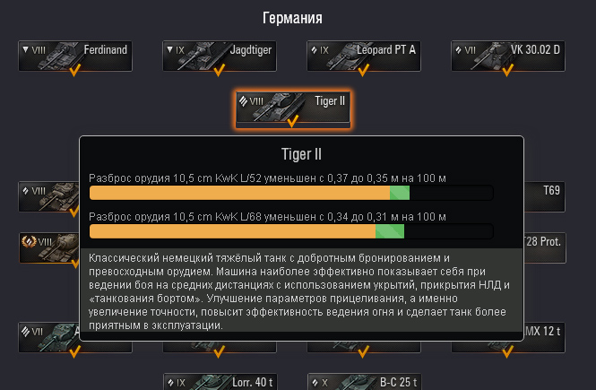 В анонсе изменений было уменьшение разброса у 10,5 см пушек Тигра2. А в клиенте все осталось по старому. Или изменений нет или забыли исправить описание...