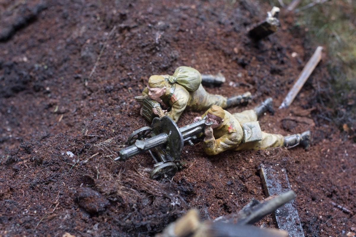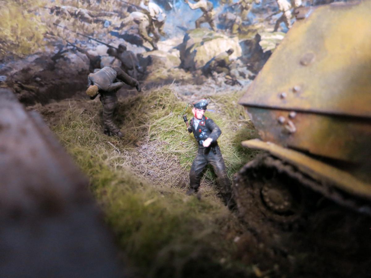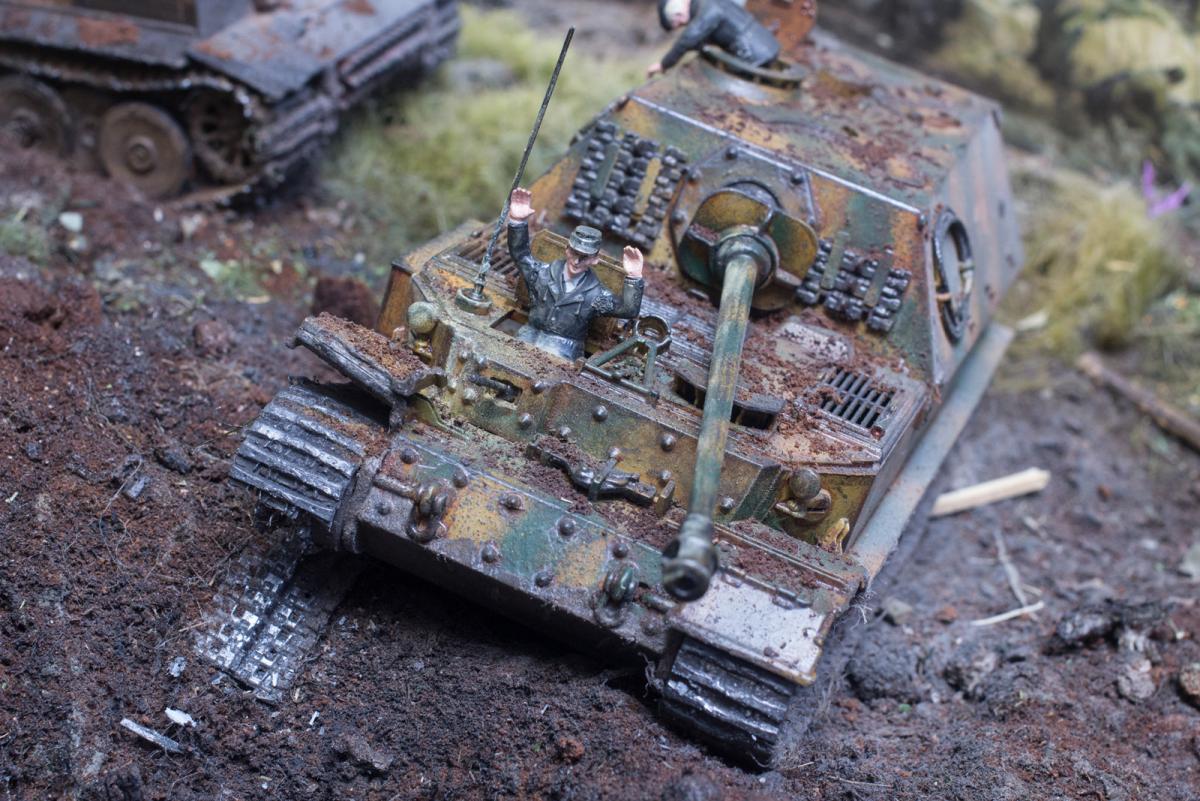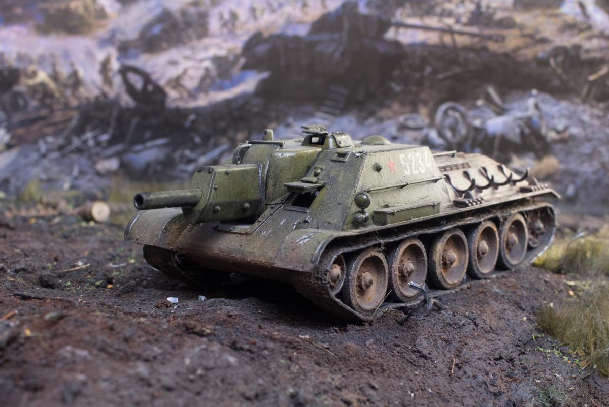 Я знаю прекрасно про это, но вот 98% простых людей, осматривающих диораму, никогда не узнают был ли там пулемет, да оно им и не нужно.Можно конечно и в "Звезду" упереться, мол такая известная фирма, а дает название Элефанту-Фердинанд, но я не буду этого делать потому, что с самого начала написал - Не придерживался технической составляющей. И вы правильно заметили-это косяк "Звезды". Моя цель пока, в первый раз, а может и последний-не исправлять чьи то косяки, а творить в свое удовольствие, предлагая людям окунуться в ту страшную атмосферу, прочувствовать эти времена. Также и сегодняшние дети, подростки теряют эту нить, нить Великой Победы наших дедов и эта диорама тоже для них некая связь с тем временем и надеюсь память. Вот, что есть моя цель. Был ли там пулемет или не был, сколько болтов и на каком расстоянии они были друг от друга поверьте это никому не интересно за исключением ярых моделистов. Почему то вы не написали про СУ 122, у которого комбашенка должна быть больше, про баки с горючим, которые обычно снимались перед боем- а зачем? Людям это не надо.Есть образ Советского танка, узнаваемый, знакомый по многим фильмам и картинкам, пулеметы и болтики рассматривают только придирчивые знатоки - я не собираюсь этого делать.