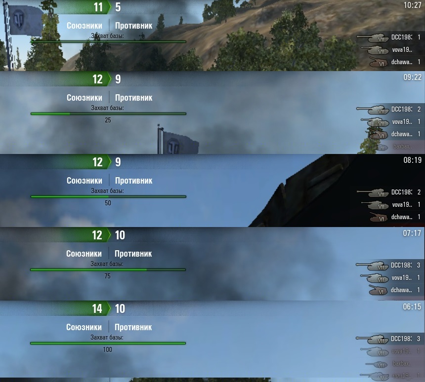 Первое же сообщение темы - захват не дошел до 100% до окончания боя Тут же миллион советов - убили танк, добавили 5 секунд ко времени захвата! Я как-раз считаю несколько иначе. И если ты внимательно читал моё сообщение - я говорю что очень странные цифры в википедии и им верить нельзя. И даже скриншоты с боёв нарезал, и эти скриншоты противоречат википедии.
