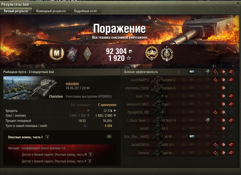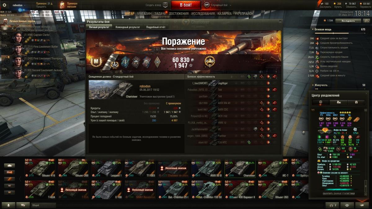 Осилил таки свои три отметке на чарике, по сабжу скажу: чем выше значение (%) тем больше надо набивать (что впринципе и так очевидно, но все же... ) с 92% начинается самый "АД", нужно минимум средуху держать 2500, только чтобы процент не падал, в случае проигрыша с "0" урона теряете 1% сразу. За последний бой - 5к дамажки дали только 0.4%. Так что дерзайте, ребята, Пт выше всяких похвал, нужно много думать на перед, смотреть на карту и реагировать, благо мобильность позволяет быть везде и всюду