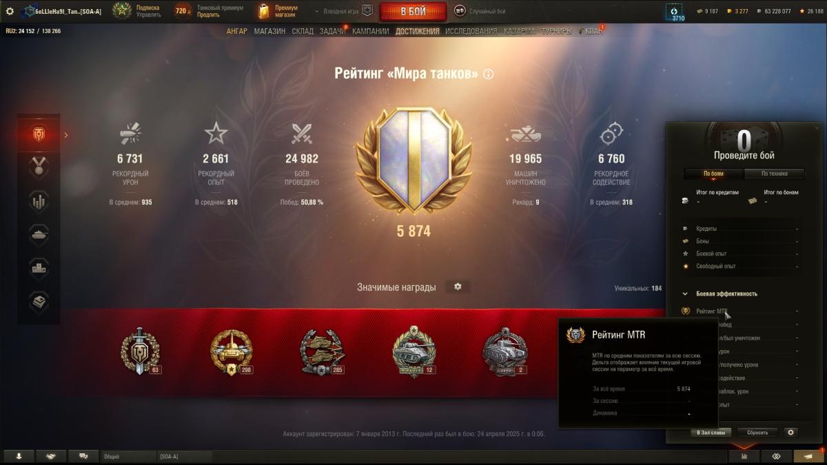 Доброго времени суток, друзья! Помогите решить такую задачу. Начиная с моего рейтинга, примерно было 5500 на тот момент, заходя в игру я видел в достижениях рейтинг 5874. Создавая взвод или присоединяясь ко взводу, я видел рейтинг 5874. Тоже самое и в Сессионной статистике, без боев, показывает рейтинг за все время 5874. Проведя один бой, полный до его завершения, я видел свою статистику. Так же в достижениях и во взводе 5501. При этом в сессионной статистике писалось -373 и не смотря на то, что я бой сыграл на 6789 рейтинга, как пример. На сегодняшний день, моя статистика выше этого значения, совсем немного 5890. Но по прежнему, везде отображается 5874, а как проведешь бой, показывает новое значение и моментальные +16. Подскажите, почему так и как это исправить? После просмотра скриншотов и моей статистики в самой игре, я могу провести случайный бой и показать, как она сразу подскочит. За ранее Благодарю!