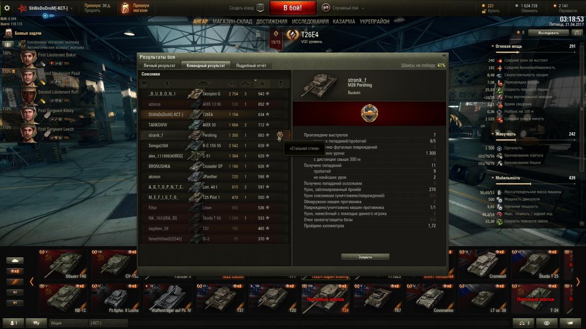 Сразу говорю, что я не (^@^) на медальки, не подумайте ничего плохого Условия получения медали "Стальная стена" были изменены? Я натанковал 1700 урона, а Pershing всего 270 что за бред?! Зачем тогда она нужна? Если я могу на каком нибудь картоне получить 10 выстрелов с уроном или в гусеницу (триплексы), а 1 чудом отбить, и я ведь получу за это "Стальную стену"! Это просто бред!!! Хотя в условиях четко указывается: Стальная стенаПрисваивается игроку, чей танк получил наибольшее количество попаданий (11 и более) с общим потенциальным уроном не менее 1000 единиц. Снаряды, не пробившие броню танка, также идут в зачет попаданий. Присваивается только выжившим. Если по итогам боя двое или более игроков имеют равное количество попаданий, то звание присваивается обоим игрокам. Источник: http://wiki.wargaming.net/ru/Стальная_стенаХотя в клиенте формулировка совсем другая...