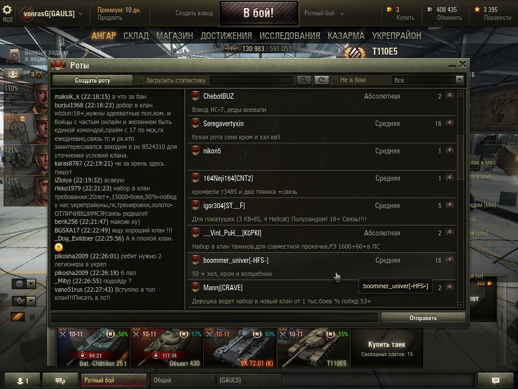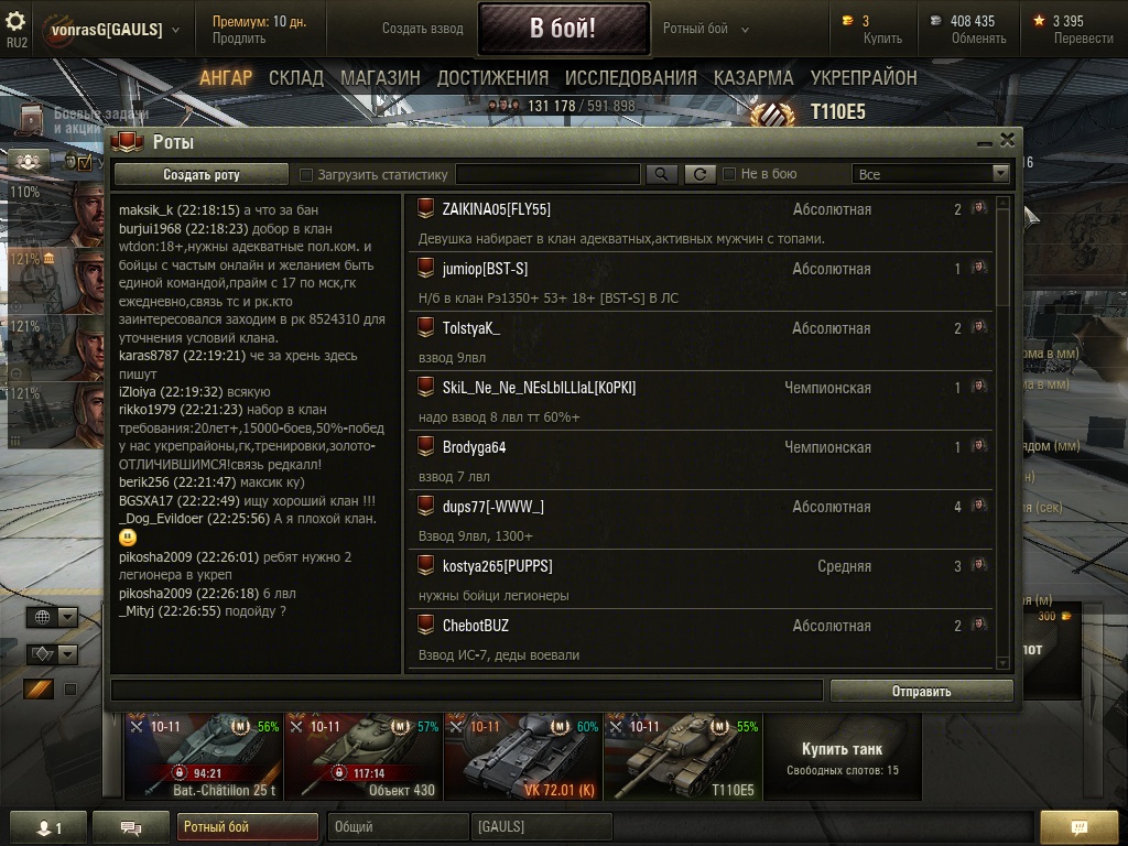 Уважаемые разработчики,после выхода укреп районов и возможности брать в них до 5 легионеров(не состоящих в клане) роты умерли наглухо,сейчас в ротах ток юниорка и то редкость,в основном наборы в клан или учу играть хорошо за плюшки. Это же бред какой то,рот просто не стало,зачем людям сливать статистику в ротах если можно гонять укрепы получая серебро и качая экипаж без потери статы! У меня есть предложение по решению данной проблемы:убрать в ротах прокачку экипажа и доходность,скажем так,сделать укреп район для получения разных плюшек для клана и к примеру что бы можно было добавлять в список к плюшкам к примеру максимум 10 человек не из клана,тогда у людей опять появится стимул играть в ротах,так как в ротах прокачка экипажа и фарм серебра остается. Прошу вас подумать над решением данной проблемы,не должно быть так что бы один режим убивал на повал другой режим.Спасибо за понимание Скрины сделаны в 22:30 в самый пик онлайна