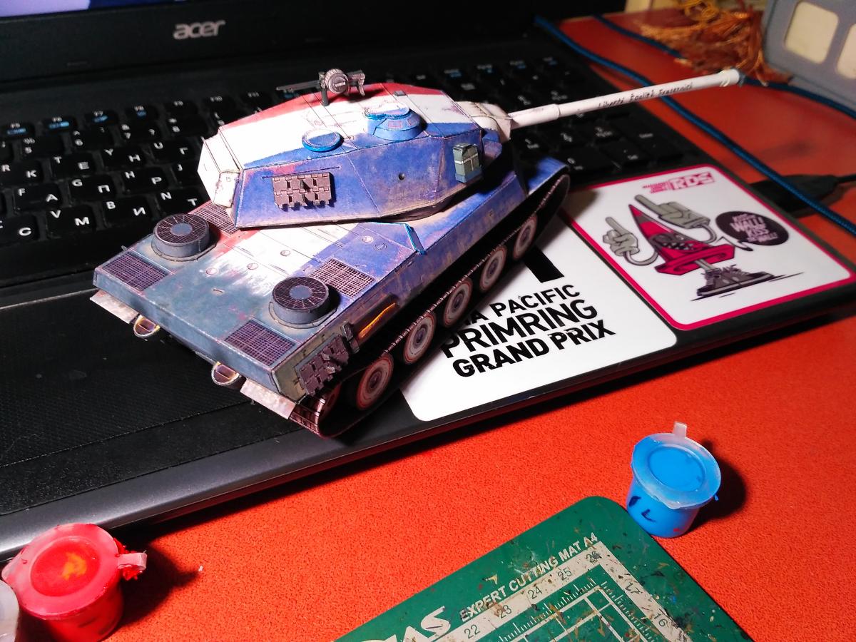 Синий вполне нормально смотрится на глаз, возможно из-за освещения он вылез на фото. Ещё будут на нормальном фоне. А ствол мог быть немного кривоват на момент фото,в дальнейшем исправил. Только-только склеил и отфотал,чтобы показать нашей команде,они настояли чтобы показал ещё и общественности