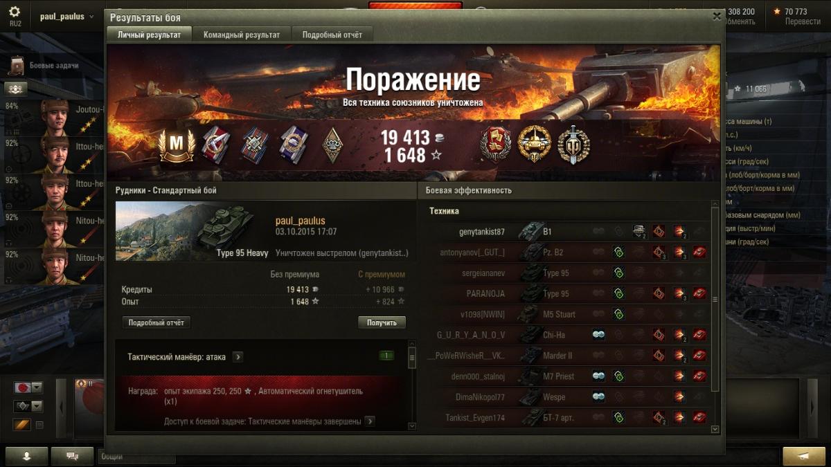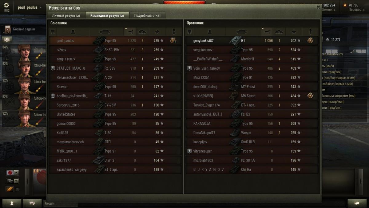 Машина пройдена за 60 боёв. Тем кто только начал выкатывать данную машину рекомендую набраться терпения и подходить к делу комплексно. 40ТР сложен в освоении, однако роль танка наносящего урон на пятом, шестом и частично седьмого уровня он выполняет. Чтобы добиться результата от медленной, не бронированной, вечно не попадающей в цель машины необходимо терпение. И смекалка. Дело в том, что уже в начале боя нужно идти в атаку исключительно в группе машин, желательно выбрав направление где есть складки местности и укрытия с насыпями. Наш корпус совсем не держит удар уже от некоторых пятых уровней, потому его нужно прятать и использовать вечное движение как аксиому, пусть наша динамика порой хуже чем у некоторых ТТ на уровне. Постоянно выкатываться и стрелять из одного и того же укрытия может закончится плачевно - меняйте свою дислокацию как можно чаще. В стоковом состоянии это особенно чувствуется - башня удары не держит, ваша альфа маленькая. Но есть в стоковой пушке точность. На этом основании колупаем противника со средней дистанции, из укрытия, лучше с кустов. Данная тактика применима и в топовом состоянии. Точности топового орудия хватает на средние дистанции (однако тут могут быть неприятные промахи даже на близкой дистанции), потому лучше сводиться до конца. Бой лоб в лоб машина переносит плохо, она должна всегда выходить с той стороны, куда противник не смотрит. Исключение составляет ситуация если противник видит лишь вашу топовую башню, но тут надо учитывать что он шестого уровня и не имеет мощного калибра или пробития. Хотя на такое рассчитывать не стоит - уверенно держать удары не получится даже в таком случае. Осторожность наше всё - если играть не агрессивно, а пытаться использовать ошибки противника к себе на пользу, можно пройти машину без всяких проблем. С самого начала прохождения 40 ТР я поставил на неё лишь два оборудования - досылатель и стереотрубу (чтобы повысить толк от засвета противников). Думал что поставлю потом либо вентиляцию, либо стабилизатор, однако до этого не дошло, так как машина уже была пройдена. Использовал чаще тактику танка второй линии. С шестыми уровнями был впереди. Если не везет с восьмыми уровнями (мне повезло, видел их редко), то используйте спецснаряды или ставьте их на гуслю, убедившись что рядом есть союзники, способные пробивать ваших противников. Главное помнить про очень низкую скорость. Назад закатиться машина не успевает очень часто. На этом всё. Удачных всем боёв!