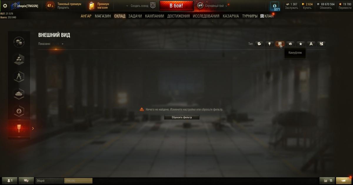 В разделе ангара Склад есть подраздел - элементы внешнего вида. В элементах внешнего вида отображаются исключительно стили из Мирного и этапные декали. Больше ничего не отображается, хотя и 2д шкурок и декалей на складе немеряно и продать их нельзя. При этом в фильтре есть и камуфляж и декали обычные и чего только нет в фильтре - жмакаешь фильтр камуфляж - склад радостно показывает пустое поле. Собственно вопрос - почему нельзя сделать отображение ВСЕХ элементов внешнего вида, хранящегося на складе в разделе... внезапно Склад? Отчего возник вопрос - за прохождение клановой прогрессии начисляют камуфляж. Но начисляют через заднее место - по итогам боя. Так я сыграл бой, меня там убили, я вышел сыграл еще бой, тут вываливается объява - вам камуфляж начислен. А начисляется камуфляж на ту нацию... на которую он начисляется. Понятно на какой танк в каком бою начислен камуфляж? нет? вот и я 3 часа голову ломал - пришлось ВСЕ нации перебирать что бы получить хоть какое представление о начисленных камуфляжах. Я таки конечно дико извиняюсь, но вы либо делайте этапные камуфляжи от кланов универсальные, либо сделайте место где можно посмотреть ВСЕ имеющиеся на складе элементы внешнего вида...