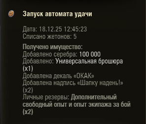 Кто размышляет крутить ли коробки за реал - не крутите. В этом году коробки нищие. Я кручу за голду. Из последних 30 коробок (10-13 декабря): 10 коробок - 2200 голды + капля свободки + капля према 10 коробок - танк по гранту + 3000 голды 10 коробок - 2200 голды + капля свободки + капля према. Оно того не стоит. Не вкладывайте деньги.