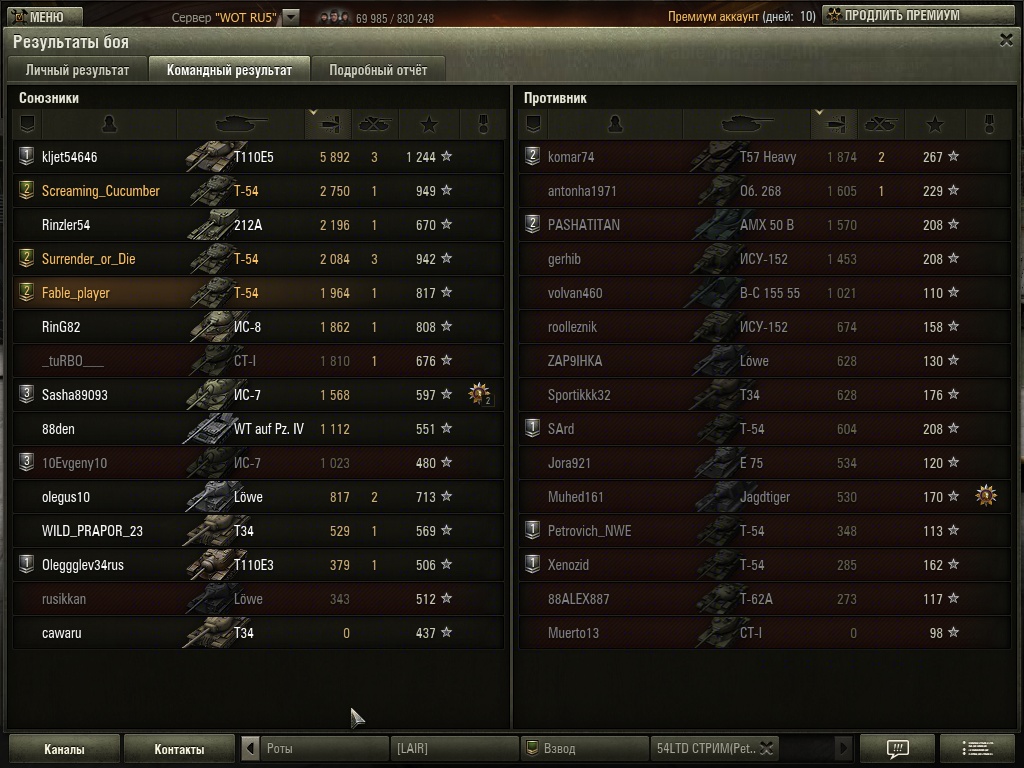 Fable_player Объект 430-2 вариант 2510 среднего за 256 боев. На 2 место пойдет?) P.S. Объект 430 10 лв не котируется? Нет в таблице