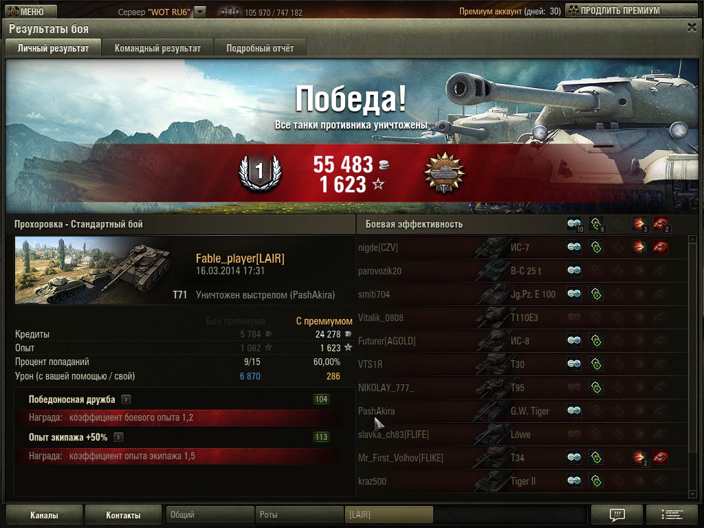 Попал в команду петровича, взял поддержку и в топе по опыту с 1109 опыта http://wotreplays.ru/site/1950751#utes-fable_player-t-54