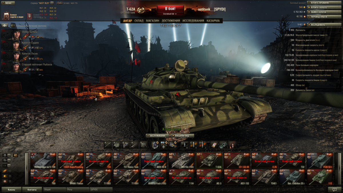 / Смотрите, я вам скрин скидываю. У меня Т62А пока без экипажа. Я что-бы вам показать засунул туда экипаж с Т54. (но пойдет ЛЮБОЙ СТ советский). Результат видите - у командира 85%, у остальных - 94%. Разумеется без ББ будет на 5% похуже, но все равно, это не критично. С таким экипажем, на низких и средних левелах, воевать вполне возможно. При этом, денег тратить не надо вообще, и опыт идет нормально и без потерь на скидывания. Пользуйтесь........