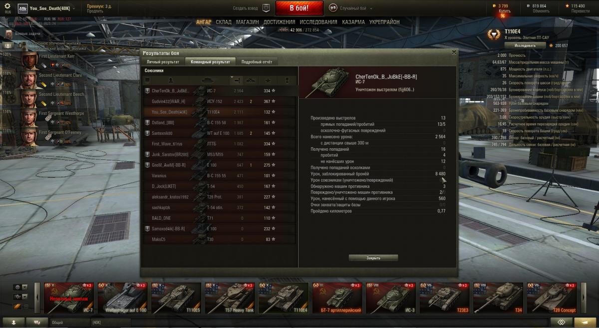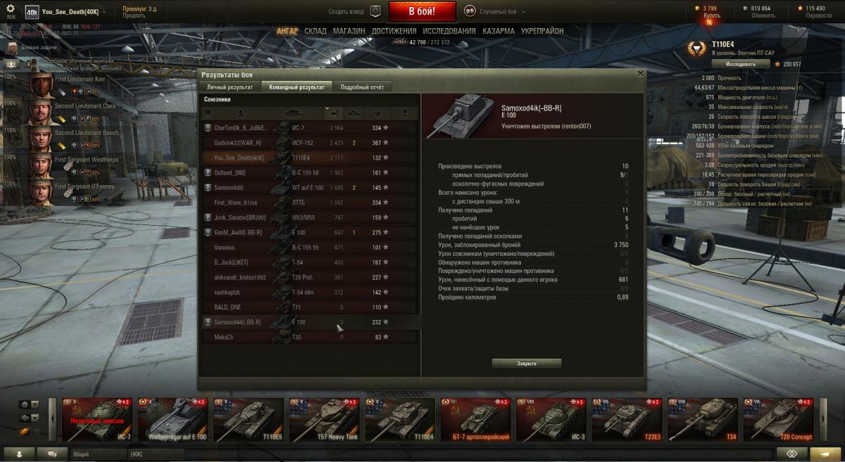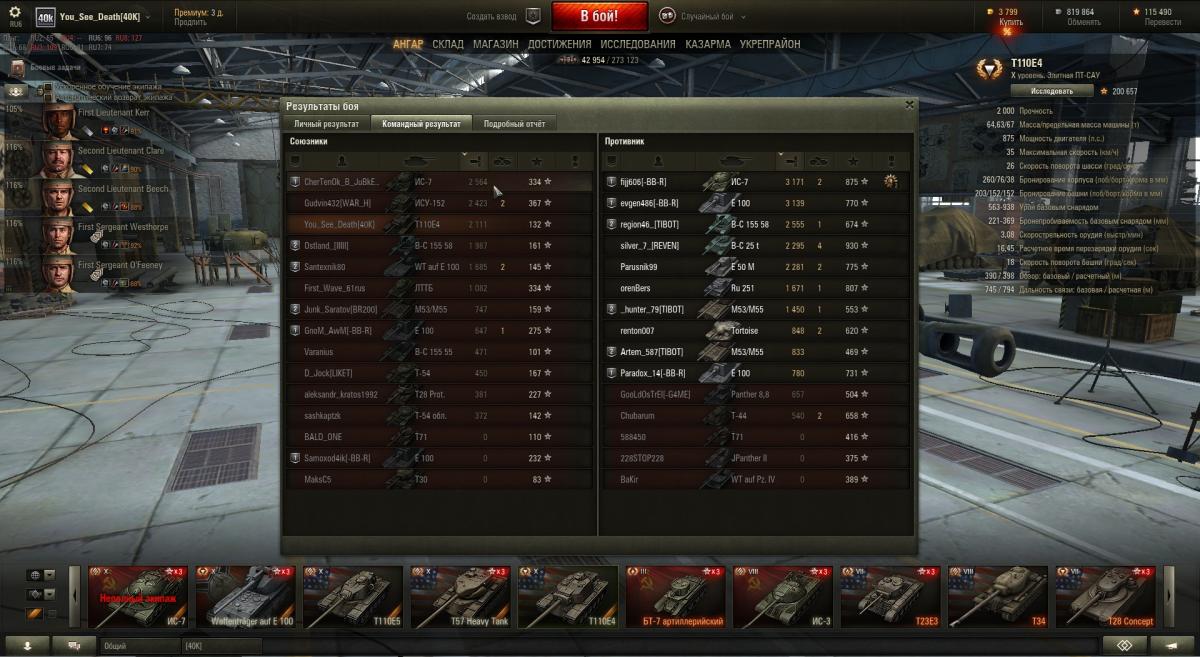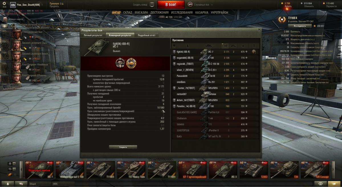 Разработчики Вы как-то наказываете таких ребят вообще?? Сейчас был в бою, в котором с каждой стороны был взвод из одного клана состоящий из 2х е100 и ис7. Клан -BB-R Они просто взяли поехали в город и стояли долбили друг друга (специально не пробивая) и тем самым выполняли ЛБЗ на ТТ. На скриншотах видно, 2 е100 (в моей команде) сделали по 9-10 выстрелов и НОЛЬ пробитий. И в противоположной команде оба е100 сделали по 10-13 выстрелов и мало пробитий. Все очевидно!!! Это норма? http://cdn-frm-eu.wargaming.net/wot/ru/uploads/monthly_11_2015/post-14300438-0-09416700-1447018870_thumb.jpghttp://cdn-frm-eu.wargaming.net/wot/ru/uploads/monthly_11_2015/post-14300438-0-58960100-1447018892_thumb.jpghttp://cdn-frm-eu.wargaming.net/wot/ru/uploads/monthly_11_2015/post-14300438-0-62375300-1447018925_thumb.jpghttp://cdn-frm-eu.wargaming.net/wot/ru/uploads/monthly_11_2015/post-14300438-0-08458700-1447018953_thumb.jpghttp://cdn-frm-eu.wargaming.net/wot/ru/uploads/monthly_11_2015/post-14300438-0-92350800-1447018985_thumb.jpg