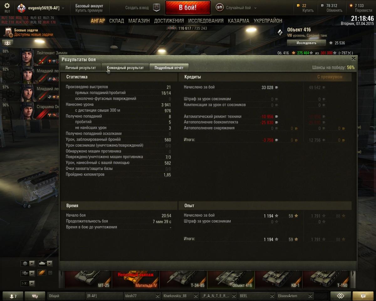 Вон на скриншоте за такой победный бой и стаким дамагом в минус почти на -4000 это при том что стрелял исключительно ББ, 21 выстрелов изних 14 с пробитием. Аптечка и ремонт не тратился ибо куплено на складе с запасом, а так было бы -10000 Кстати думал мастера дадут, таки дали 1 степень.. Сколька ж надо на мастера нащёлкать?
