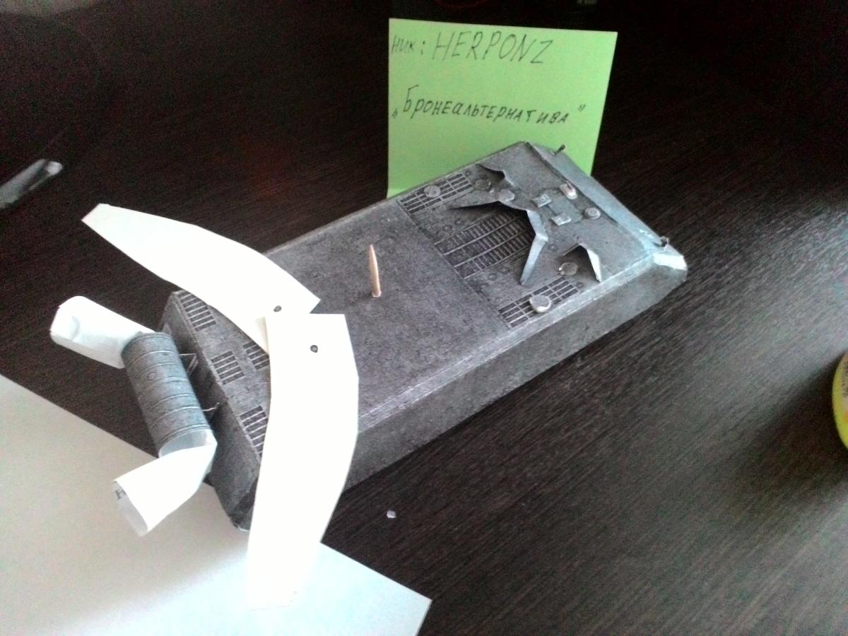 http://cdn-frm-eu.wargaming.net/wot/ru/uploads/monthly_02_2016/post-14565811-0-06957100-1456660342_thumb.jpg 1. HERPONZ 2. Бронеальтернатива 3. Maus, с орудием БЛ-10 , крчльями , и 3 турбины , 2 с зади и 1 спереди 4. Создание http://cdn-frm-eu.wargaming.net/wot/ru/uploads/monthly_02_2016/post-14565811-0-69610500-1456660301_thumb.jpghttp://cdn-frm-eu.wargaming.net/wot/ru/uploads/monthly_02_2016/post-14565811-0-14197200-1456660303_thumb.jpghttp://cdn-frm-eu.wargaming.net/wot/ru/uploads/monthly_02_2016/post-14565811-0-29898300-1456660304_thumb.jpghttp://cdn-frm-eu.wargaming.net/wot/ru/uploads/monthly_02_2016/post-14565811-0-55699000-1456660305_thumb.jpghttp://cdn-frm-eu.wargaming.net/wot/ru/uploads/monthly_02_2016/post-14565811-0-82098400-1456660306_thumb.jpg 5. Фото с других ракурсов