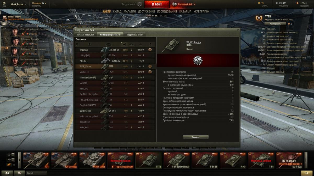 То есть ИС-3 с МЗ берут... брали раки, а Мутц берут папки? Знаете, что скажу? Привык играть от брони, поэтому для меня ИС-3 с МЗ очень даже хороший прем. А вот в Мутц не смог, но не говорю, что аппарат плохой, просто не умею я играть на подобных танках. Для меня Т-54 обр.1 лучше, чем Мутц, ибо там броня. Для кого-то наоборот, важнее динамика. Вот и все, не в танке дело. Но я научусь. На Мутц сыграл 6 боев всего. К 10-ам кинуло один раз, к 9-ам один раз, четыре раза в топе. Показатели получились очень плохие. Потому что: 1. Экипаж не прокачан. 2. Играл с модема (пинг лютый). 3. Руки все-таки кривоваты для этого танка.