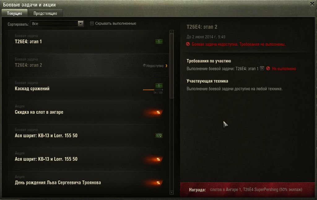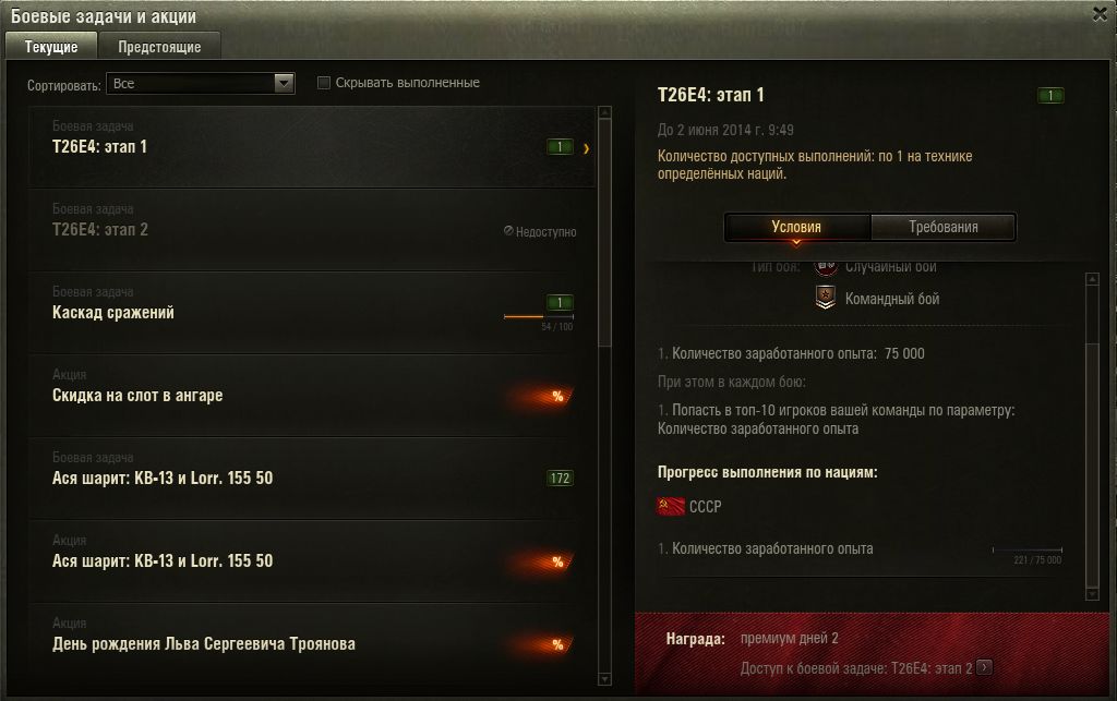 Доброго времени суток, В ветке с багами создать тему я не могу, к тому же не нашел для неё подходящего подфорума (разве что - баги в механике), поэтому создам в этом разделе. Суть проблемы: выполнил 1й этап по данной акции на КВ-1С, набрал 75 000 опыта ==> получил 2 дня премиума. начал выполнять 2й этап... через 1-2 боя 2й этап стал "недоступен" и акция сбросилась вновь на 1й этап. при этом очки опыта за бои уже не начисляются. Помогите в решении данной проблемы. Заранее благодарен. ps если необходимо, могу загрузить скрин клиента.