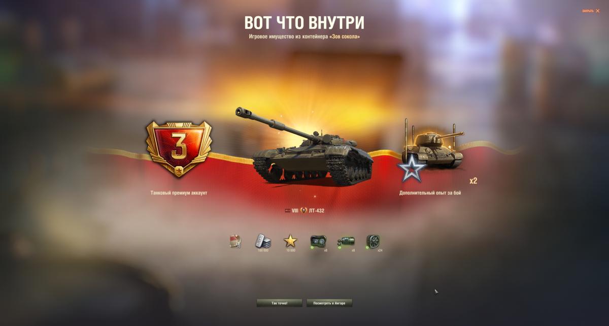 Всем привет! Не часто теперь пишу на форуме, но тут есть приятный повод - накопил на 10 контейнеров сокола (не донатил, чисто боями накатал), решил открыть разом особо ни на что не надеясь. И что я вижу - лт 432! https://forum-mt-prod.lesta.ru/emoticons/Smile_ohmy.gif Вот это неожиданно и приятноhttps://forum-mt-prod.lesta.ru/emoticons/Smile-izmena.gif Желаю удачи всем, кому еще ничего не выпало