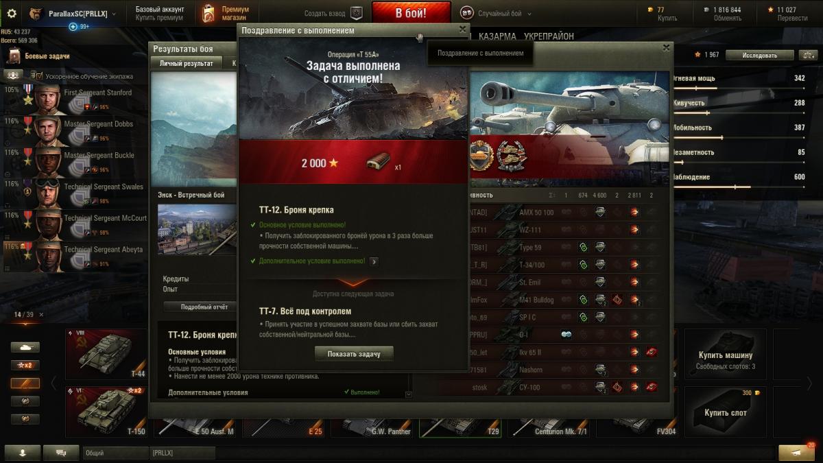 Очень долго страдал и пытался выполнить ТТ-12 сначала на Е 75, потом на Е 100, ни фига не получалось даже близко. На Т29 пошло веселее, несколько раз натанковывал сколько надо, но не хватало урона до 2000. Наконец, получилось на Энске - поехал с СТ на зелёнку, выставил башню из-за холмика, когда понял, что танковка идёт как надо, переключился на голду на всякий случай, чтобы пробивать гарантированно. В общем, Т29 для ТТ-12 подходит замечательно. Но обязательное условие - включить в плейлисте Manowar, здорово помогает.