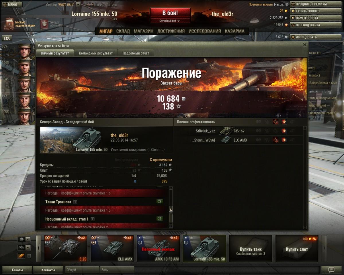 Катаю на лоре, при попадании в топ10 отмечаются выполненные боевые задачи: Ася шарит (КВ-13, Lorr 155 50) x1.5 опыта экипажа, Танки Троянова x1.5, неоценимый вклад этап 1 x2 Несложно прикинуть, что экипаж после такого боя получает х4.5 Такая проблема: 1. Смотрим личное дело любого члена экипажа и опыт, который остался до след. процента: заряжающий, 3749 http://cdn-frm-eu.wargaming.net/wot/ru/uploads/monthly_05_2014/post-12089110-0-57419300-1400750170_thumb.jpg 2. Играем бой: рэндом, глупый слив, опыта дают 138, на скрине видно, что все три задачи выполены http://cdn-frm-eu.wargaming.net/wot/ru/uploads/monthly_05_2014/post-12089110-0-76068000-1400750181_thumb.jpg 3. Возвращаемся в личное дело, видим число 3335. http://cdn-frm-eu.wargaming.net/wot/ru/uploads/monthly_05_2014/post-12089110-0-86723900-1400750203_thumb.jpg Нехитрый расчет покажет, что за один бой месье Leon Mitterrand получил 414 опыта, а поделив эту величину на полученные боевые 138, увидим коэффициент опыта, который действительно работает, всего х3 В связи с чем следующие вопросы: 1. Какая акция не умножает опыт? ася шарит или танки троянова 2. Почему этого не происходит? P.S. Я тут набросал 840 причин почему я не зануда:D ну серьезно, если акция не срабатывает, то и в итоги боя ее не нужно помещать, а то несолидно P.P.S. надеюсь, выбрал правильный раздел на форуме, если нет, пусть топик перенесут)