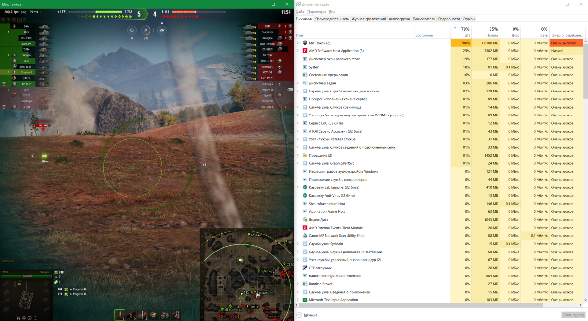 Ну конечно, а куда они денутся? С уменьшением графики ни чего же не меняется, только фпс чуть больше. Кстати, разница всего около 20 кадров в среднем между минимум (ср. фпс 100) и ультра (ср. фпс 80). Плюс 25% или минус 20%, смотря как считать, что очень мало. Я даже не знаю как ещё объяснить. Я хочу адекватной работы оборудования в танках. Как по мне, так просто посмотрев на графики в диспетчере задач, неадекватная работа очевидна. Танки настолько идеально распараллеливают процессы на 4 ядра? Им всегда надо ровно 70% (в моём случае) мощности процессора и ровно 30-60% (в зависимости от настройки графики) мощности видеокарты, ни больше- ни меньше независимо от ситуации в бою, независимо от сложности картинки и т.д. и т.п., и даже на паузе?