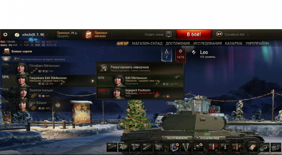 Дали девушку- наводчик. Где экипаж?! где три тела со 100% + 1 перк? готов принять за счет допустившего данный косяк. Эту радистку за 500 (ПЯТЬСОТ) голды переучивал на наводчика! у мужиков весь экипаж (в акцию) новый танк освоит!!! и хорош закрывать темы! вайн так вайн! еще 4 дня каникул))))