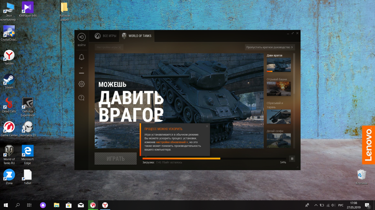 Все доброго дня. Столкнулся с такой проблемой что после обновления 9.15 игра стала немного фризить и иногда почему то подвисать когда интерент стабильно работает. Проблемы: 1) после запуска клиента в меню выбора серверов все сервера красные показаны как не играбельные (ping 500+, вся шкала красная), когда заходишь на сам сервер в ангар игра и там фризит, приходится перезапускать клиент; 2) Во время боя игра немного фризит (при этом ping 20, fps 50-70), сначала думал что процессор может быть перегружен или нагрелся как некогда но нет, максимум по температуре процессор нагревается всего на 30% (просто работает 36 градусов, в игре 46.8 бывает 56, просто куллер хороший), загруженность процессора всего 60-75%; 3) Экран почему то растягиваеться не в ширину а высоту, иконки снизу на половину уходят вниз и видно тока верхнюю часть иконок. До обновления игра работала стабильно, без фризов тока FPS был меньше 40-60, после обновы да он поднялся но появились фризы. Решил обновить драйвер на видеокарте (у меня nvidia), они выпустили драйвер специально для танков но и это не помогло решить проблему. Железо: Nvidia GTX 650 1Gb, Intel Pentium Processor G2030 (3.00 GHz), Ram 12Gb ну и Win 7 x64 (Настройки до патча: средние-высокие; после патча: так же средние-высокие). Фиг знает что делать, но с фризами играть как то не удобно