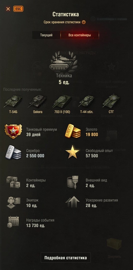 ну, с 57 коробок выбил 2 легендарных сундука, 2 стиля на Т92 и меркаву, только секера интересная из танков выпала. СТГ, Т54 Б, 703/100, Т44обл нафиг не нужны были, но голды норм отсыпало 19800, больше не доначу, не понравилось