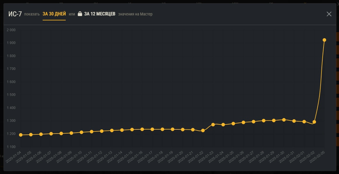 Ситуация следующая: игровой механизм, отвечающий за динамический переодический пересчёт требуемого для знаков классности числа опыта очевидно учитывает опыт, получаемый игроками в режимах с бонусами к ТТХ техники и прочими изменёнными механиками игры. Доказательством этому служат статистические данные, собираемые различными приложениями и сервисами для уточнения планок достижимости этих наград вроде сайта Левши, а точнее - резкие скачки в этих данным, сопряжённые с датой старта отдельных ивентов. Для примера рассмотрим график с естественным ростом планки "Мастера" для танка Т20 (СТ-7 США) ввиду старта проекта "Орбита" (прикреплённый скриншот №1): здесь планка начинает постепенно расти в день выхода обновления для всей игры, и потихоньку сползать - с каждым днём после определённого пика ввиду того, что игроки достигают нужного числа опыта и переходят к следующему танку в ветке. А теперь взглянем на аналогичный график для танка M26 Pershing (СТ-8 США) (прикреплённый скриншот №2): здесь также наблюдается рост планки после старта проекта "Орбита", но как только в игре становится доступным режим "Аркада: На всех парах", и без того высокая планка опыта на "Мастера" (около 1600 ед. чистого опыта за бой) за одни сутки взлетает выше 2000, что очевидно связано с занебесным для классического рандома уроном, наносимым игроками в указанном фан-режиме на любой технике в удачных боях. Напоминаю, что "Аркада" доступна для танков 8 и 10 уровней, а соответственно, аналогичная ситуация наблюдается на абсолютном большинстве танков данных уровней. Приложу для достоверности аналогичную статистику для ИС-7 (прикреплённый скриншот №3). Кстати, эту же ошибку замечали во время активностей в недавно завершившемся "Натиске". По итогу, данная ошибка в расчётах, учитывающая статистические данные из режимов "Не идущих в статистику" низводит в ничто старания всех игроков на танках 8 и 10 уровней, старающихся выбить "Мастера" (будь то ради отдельных ЛБЗ из сетки 2.0 или как самоцель игрока). При чём эта проблема решается банальным фильтром на поток данных, ограничивающий статистику лишь данными из рандома. Собираются ли это фиксить?