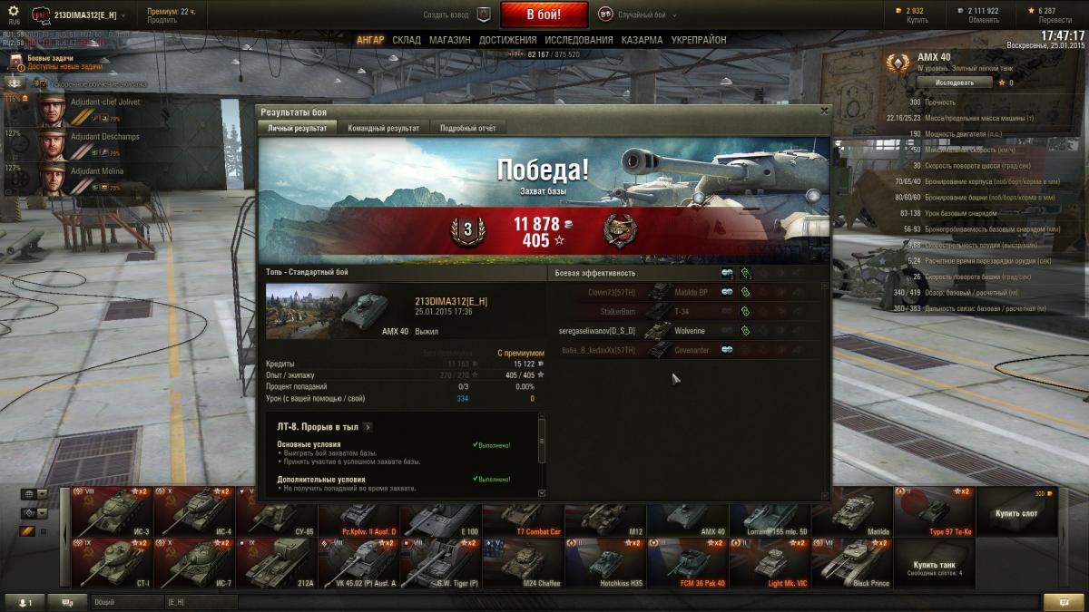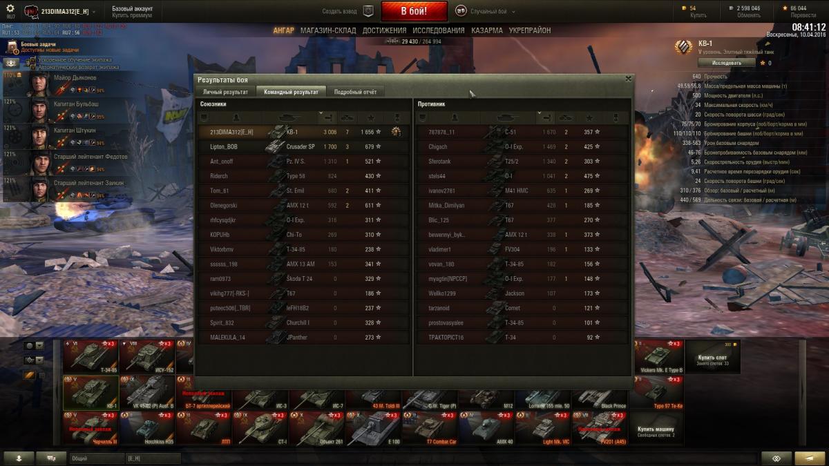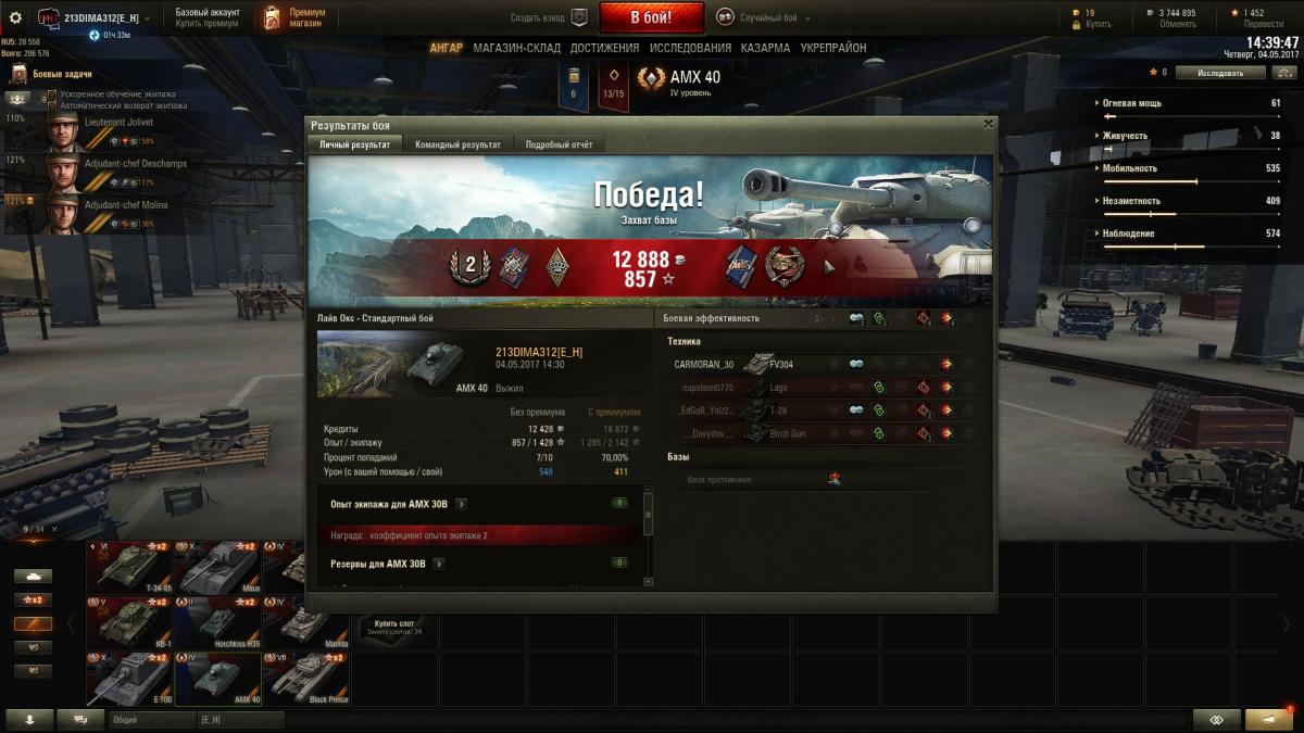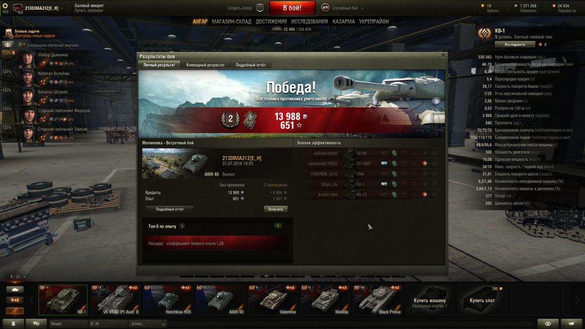 Вчера тестили броню КВ-1 против АМХ40 и вот что получилось Благодаря участию в тестах уважаемого 213DIMA312 у меня для водителей "батискафа" есть несколько новостей, касающиеся текущего состояния нашего "вековечного врага" КВ. Первая новость хорошая и выглядит вот так: http://cdn-frm-eu.wargaming.net/wot/ru/uploads/monthly_04_2016/post-376550-0-04322800-1461504471_thumb.jpg При подходе вупор к КВ со лба, опускаем хобот на свои максимальные 10 градусов вниз, доворачиваем башню, что бы смотреть как можно более по нормали и С ГАРАНТИЕЙ перфорируем БРОНЕБОЯМИ пологий ВЛД. Угол его наклона был изменен в последнем патче. И если до этого изменения мы его таким образом пробивали с 60% случаев, что в этот тест 4 бронебоя по очереди пробили этот лист. Три других новости печальны. Стандартные точки пробоя в лице пробки мехвода, курсового и "ворошиловского" пулеметов теперь являются монолитными 75 мм брони и пробиваются разве что при выпадении пробоя шибко выше среднего: http://cdn-frm-eu.wargaming.net/wot/ru/uploads/monthly_04_2016/post-376550-0-04383900-1461504763_thumb.jpg Хоть отметки и есть, но люк и пулемет не пробиты. http://cdn-frm-eu.wargaming.net/wot/ru/uploads/monthly_04_2016/post-376550-0-51313600-1461504799_thumb.jpg Та же фигня с "ворошиловским" пулеметом. За него особенно обидно так как раньше его могли пробивать ББ-хами танки 3-го уровня.