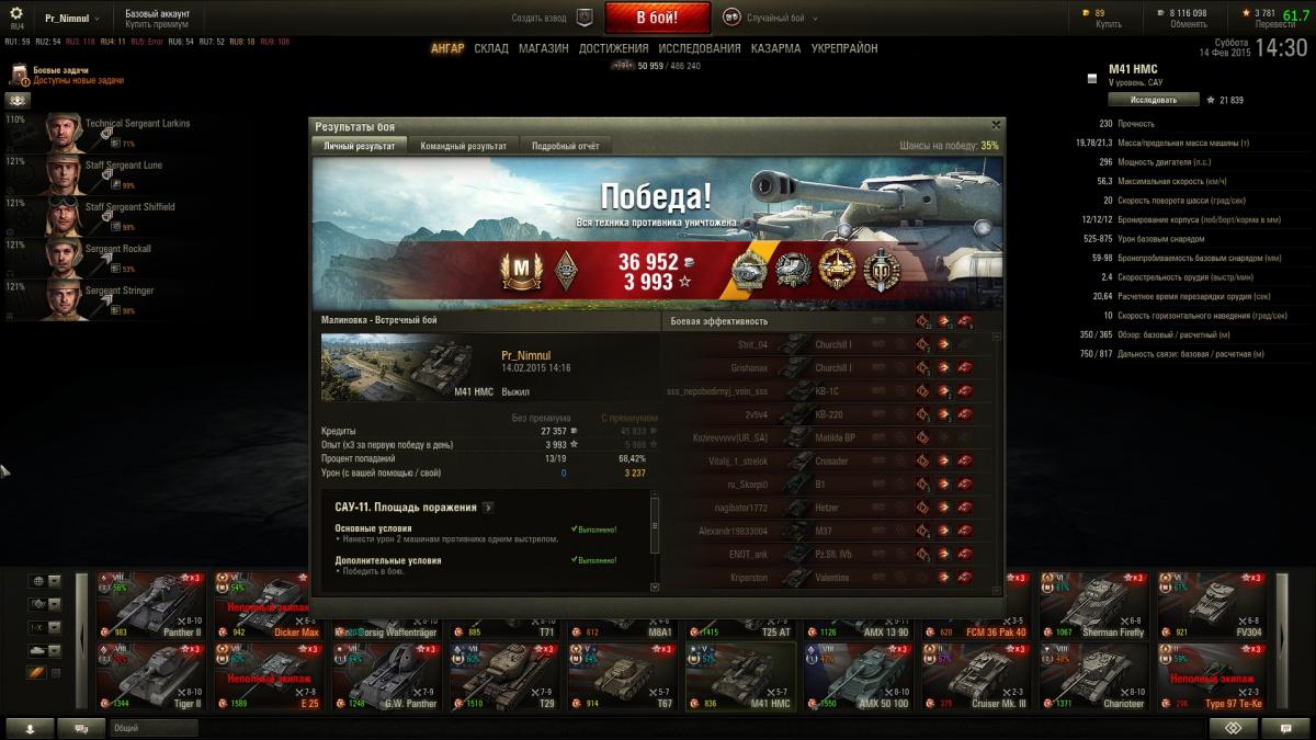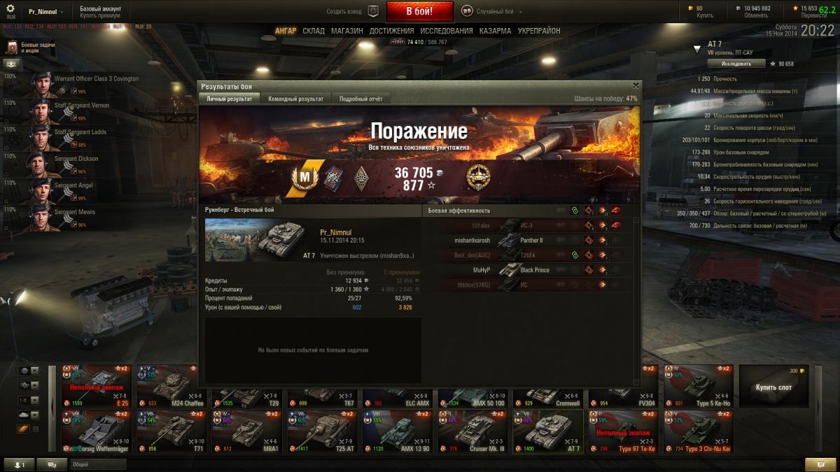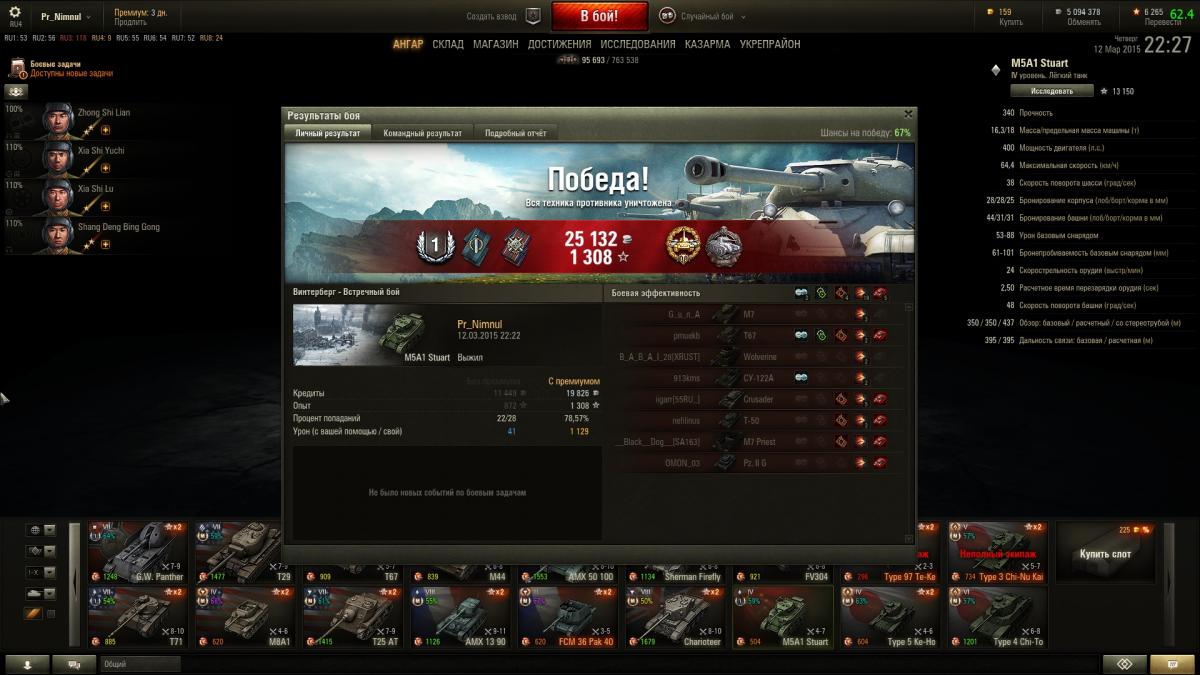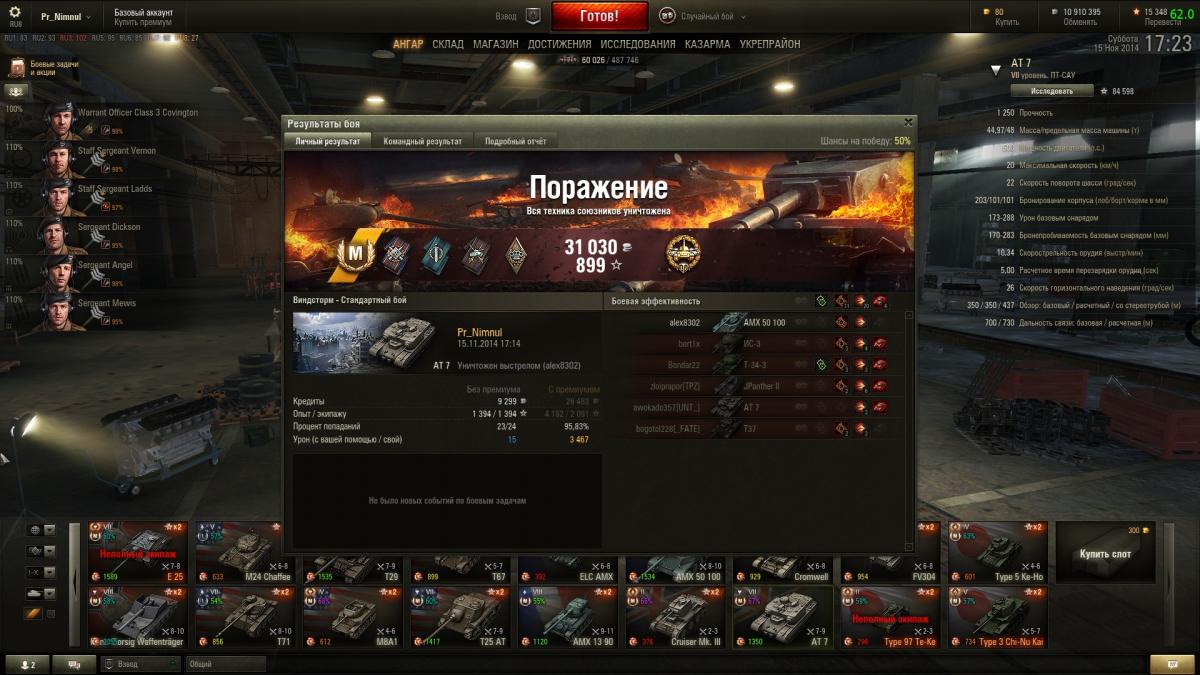 За несколько последних боев перед открытием тумбочки наконец то удалось набрести на оленье стадо и взять парочку мастеров. Из ангара однозначно долой - машинка хоть и сильная, но крайне узкоспециализированная и в большинстве боев просто унылая.